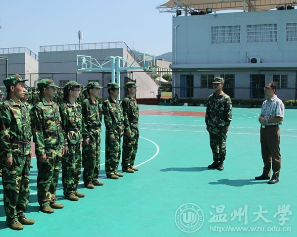 9月20日军训第二天,万象城awc官网登录入口党总支副书记杨振海前往北校篮球场慰问军训教官,看望参加军训的242名新生。