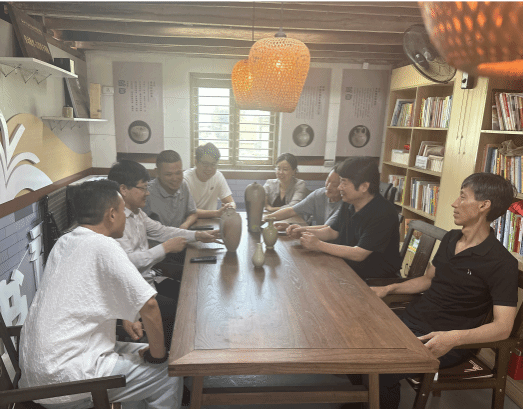 1999级美术学专业校友、碗窑非遗研学工坊负责人庄永烈介绍了工坊的发展历程、业务范围以及在非遗传承与创新方面的实践成果,并且参观了校友企业瑞安嘉华设计院设计的曹村东岙文化礼堂。他表示,希望与学院进一步加强合作,共同探索非遗文化与设计教育的融合路径,培养更多具有创新能力和文化传承意识的设计人才。