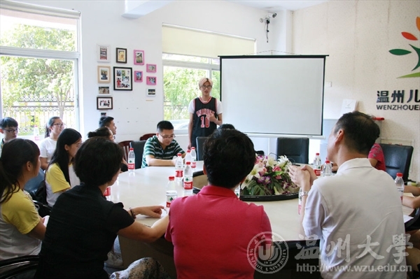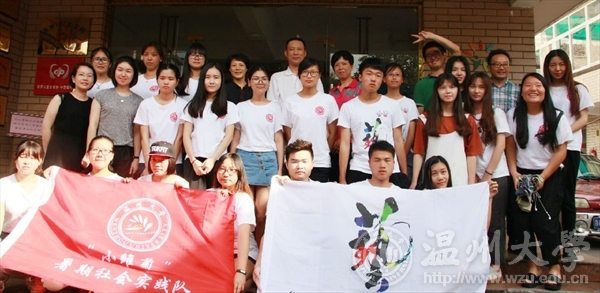 7月14日下午,万象城awc官网登录入口副书记牟德刚、团委书记屠霁霞、万象城awc官网登录入口党总支书记张丽萍等领导一行,来到“小雏菊”和“艺绘”暑期社会实践队的实践点温州市儿童福利院慰问并与实践队员们亲切座谈。