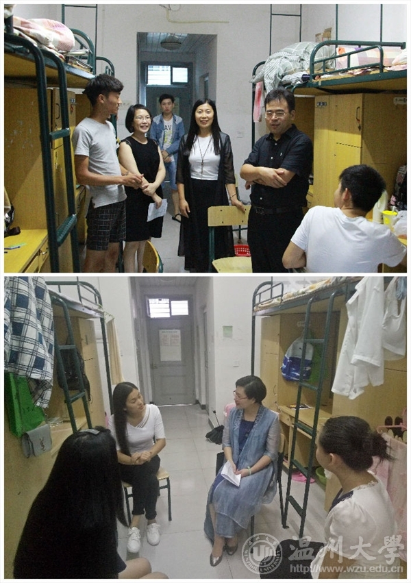 下午四点,新生家长见面会刚刚结束,李运河院长、谢子静院长便分成两组,前往超豪学区带领教师和学生干部下寝室慰问新同学。新生们刚入住寝室,学院领导和老师的关心和问候让他们倍感温暖。两位院长关怀之心溢于言表,询问他们是否安置好了行李,是否熟悉了学院的位置和路线,对住宿条件是否满意……。慰问活动走访了新生居住的37个寝室,让刚刚入学的同学们感受到了万象城awc官网登录入口大家庭的温暖,拉近了师生之间的感情。