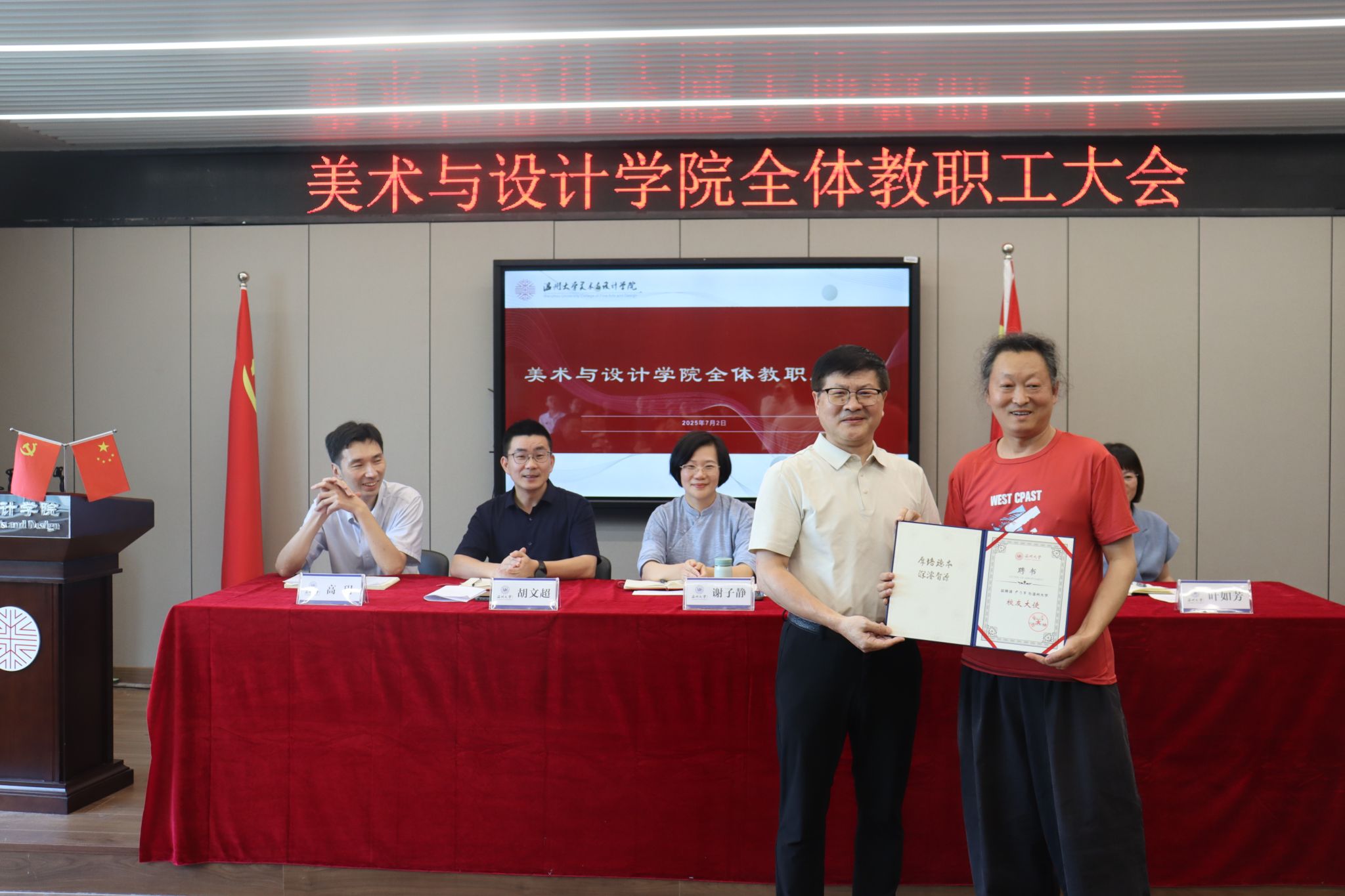 7月2日,在学院4001会议室召开万象城awc官网登录入口全体教职工大会,学院领导班子及全体教职工参加本次会议,会议由学院党委书记刘青松主持。会上,副院长高玥围绕本学期教学工作内容进行总结,对暑期相关工作进行部署,尤其是教学评估相关事宜,号召全体教职工结合自身的工作,认真准备好评估的工作。党委副书记、纪委书记叶如芳就上半年发展学生党员、考研升学、获奖情况、人才培养质量、就业率等情况进行交流总结。副院长胡文超围绕课题申报、科研工作等进行总结,强调服工专业认证要积极推进等。会上,院长谢子静表示本学期工作圆满结束,她代表学院班子向全体教职工的辛勤付出表示最衷心的感谢,并围绕本学期教学科研、专业建设、人才培养、服务地方、国际合作等工作进行整体总结,针对暑期和新学期重点工作进行部署。院长谢子静强调接下来要积极对接引进顶尖人才,做好审核评估和专业认证工作,专业优化升级,科研与学科发展要不断突破新成果,迈上新台阶,精准对接做好服务地方工作,持续做好国际合作工作,启动“十五五”规划调研等工作。党委书记刘青松传达学校保密工作有关精神,就党建相关工作进行总结,针对暑期和下学期进行部署,并为尹乃军老师颁发万象城awc官网登录入口校友大使聘书。随后全院教职工观看了习近平对精神文明建设工作作出重要指示、习近平致信祝贺复旦大学建校120周年相关视频内容。(撰稿:张珈瑜;初审:黄旭红;复审:叶如芳;终审:谢子静,刘青松)