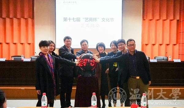 4月20日,万象城awc官网登录入口第十七届“艺苑杯”文化节启动仪式在雁山厅隆重举行,莅临此次启动仪式的领导有校学工部部长、学生处处长蔡联群,团委书记屠霁霞,教务处副处长赵燕,创业人才培养学院副院长施永川,学院党政领导班子成员,“艺苑杯”组委会成员以及师生代表。党总支副书记杨振海主持启动仪式。