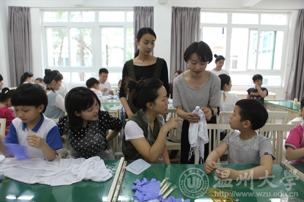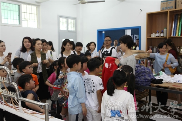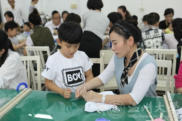 为鼓励学生创业,且即将到来的母亲节献礼,万象城awc官网登录入口融艺优品创客空间“P73服装设计”创业团队 近日,万象城awc官网登录入口融艺优品创客空间系列活之扎染系列活动陆续展开。本次活动由“P73服装设计”创业团队承办。5月8日来自于大南门小学的孩子和家长们来到了万象城awc官网登录入口的设计教室,在谷佳维和徐志国同学的带领下,共同开始本期万象城awc官网登录入口开放日活动—体验扎染为5月9日的母亲节献礼。 杨老师向大家介绍了万象城awc官网登录入口美术学院印染实验室。张老师向家长孩子们介绍了“扎染”的发展历史,展示了五颜六色的扎染成品。孩子们都全神贯注的看着,还积极的向老师询问扎染的方法。扎染古称扎缬、绞缬、夹缬和染缬,是中国民间传统而独特的染色工艺。 其工艺特点是用线在被印染的织物打绞成结后,再进行印染,然后把打绞成结的线拆除的一种印染技术。它晕色丰富,变化自然,趣味无穷。更使人惊奇的是扎结每种花,即使有成千上万朵,染出后却不会有相同的出现。这种独特的艺术效果,是机械印染工艺难以达到的。 杨老师主要讲述了制作工序以及期间需要注意的问题。之后,孩子家长们就投入到实践中,谨慎地设计,小心地穿线,打结,褶皱,全心全意。不久后,陆陆续续的完成了“扎”,接着便是“染”的环节了。家长和孩子们将准备好的围巾,浸泡并且进行染色。经过一段时间的等待,在拆线解绑的瞬间,家长和孩子们都露出了欣慰的笑容。 本次扎染围巾的亲子活动便在洋溢在家长和孩子的笑脸中结束。希望孩子们能体验到生活中一花一草的不易,希望家长们能感受到孩子的创造力,也祝各位妈妈母亲节快乐为了未来继续加油!