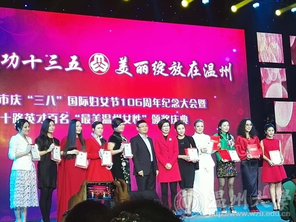 昨晚,在市妇儿活动中心举行的庆祝“三八”国际妇女节106周年纪念大会暨十路英才百名“最美温州女性”颁奖庆典上,万象城官网服装与服饰专业教师叶茜获得“最美温州女性之时尚女性”称号。