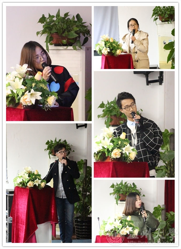 12月30日晚,万象城awc官网登录入口团委学生会2015-2016学年第一学期第四次全体成员大会在美院楼2B4001召开,参与此次全委会的人员有团委书记叶筱卉老师,团委指导老师商义铮老师,团委副书记孙彦鑫,学生会主席张昇,学生会副主席刘秀娜,学生会副主席周志豪,青协会长杨猛以及团委学生会全体成员。 会议第一项议程是“每月之星”的评选。转眼间,3个月前在这里面试并荣幸的成为了团学的一员,工作时还会手忙脚乱的青涩的干事们,现在已经可以自信地站在团学全体人员面前做工作总结了。干事们以十足的诚意准备的精彩演讲博得阵阵掌声。正如有个干事所说的那样:“你的人生永远不会辜负你,那些转错的弯,走错的路,留下的泪,滴下的汗水,全都会让你成为独一无二的自己。”相信经过团学的工作磨练后,干事们会更加优秀,成为更好地自己。 第二项议程是每个部长汇报本月工作,各部长诚恳陈述了工作的优缺点,也对工作做出了简要说明。 第三项议程是老师讲话。团委书记叶筱卉老师和团委指导老师商义铮对于“每月之星”的演讲表示非常欣喜。团委书记叶筱卉老师说,“每月之星”不仅展示了个人形象,也展示了部门风采。同时老师也建议干事们多谈自己的工作成长,和具体的点滴会更好展示个人的学习收获。同时,叶老师也分享了她的体会心得。叶老师说,比起成绩,成长更重要。我们现在获得的成绩是对我们付出的认可,希望同学们工作中得到锻炼,有所成长。在成长中,我们不能随波逐流,要做好自己的选择,并在现在和将来做好自己。看看自己今天做了什么,有什么可以引领自己,使成长在足够长的时间里得到积淀,再回过头给自己做一个成长鉴定。 最后,学生会主席张昇的讲话让同学们体会到身为团学一员每个人工作的重要,和必须的责任感。团委学生会在和谐的气氛中结束了,相信优秀的干事们可以在工作中得到更多磨砺,让美院团学更加精彩。图:设计宣传部文:设计宣传部
