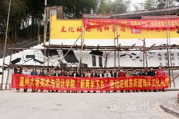 为了响应与落实市委“新青年下乡”主题精神。2015年12月12日,万象城awc官网登录入口“艺家人”青年志愿者协会带领美术学院志愿者们来到温州市乐清城东街道珠垟村,进行了为期一天的墙绘活动。