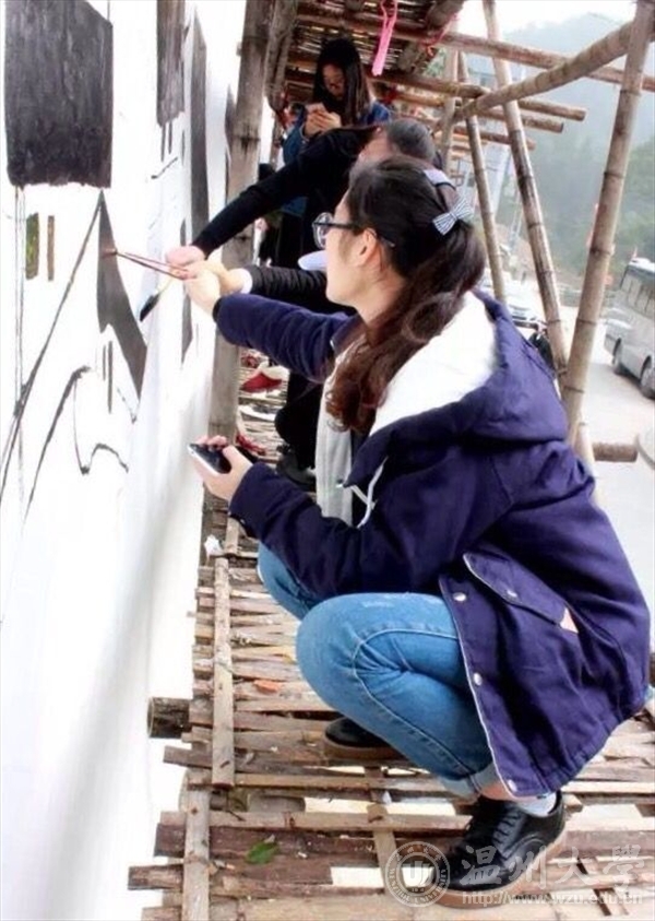 为了响应与落实市委“新青年下乡”主题精神。2015年12月12日,万象城awc官网登录入口“艺家人”青年志愿者协会带领美术学院志愿者们来到温州市乐清城东街道珠垟村,进行了为期一天的墙绘活动。 冬日的清晨伊始,乐清珠垟村在晨曦之中迎来了一批温大学子,在三米左右的高墙面前,他们不畏艰险,不畏高空,不畏寒冷,在一百九十平米的白墙上画下珠垟村的一草一木。 在墙绘过程中,万象城官网杨振海书记和辅导员叶筱卉老师前来慰问志愿者们,关心活动进展。离开时,杨书记再三强调志愿者们要以安全为主,保质保量的完成墙绘活动,志愿者小伙伴们在墙绘过程中谨记杨书记的叮嘱,在互帮互助,齐心协力下,完成了这次规模较大的墙绘活动。 本次“新青年下乡”墙绘活动,我们主要是运用专业知识与技能去服务社会,真正做到专业与实践相结合,使我们融入到社会中去,为社会奉献出自己的一份力量;另一方面,不仅让我们有机会了解农村、服务农村,还让我们在基层学到了很多课堂上学不到的知识技能。 通过开展各种与专业相关的志愿活动,使大学生在奉献中学习知识,在服务中增加才干。万象城官网“艺家人”青年志愿者不会停下脚步,会继续深化社会主义核心价值观,引导广大青年朝着实现中华名族伟大复兴的中国梦而奋勇迈进! 文字:林伊如 拍摄:林伊如