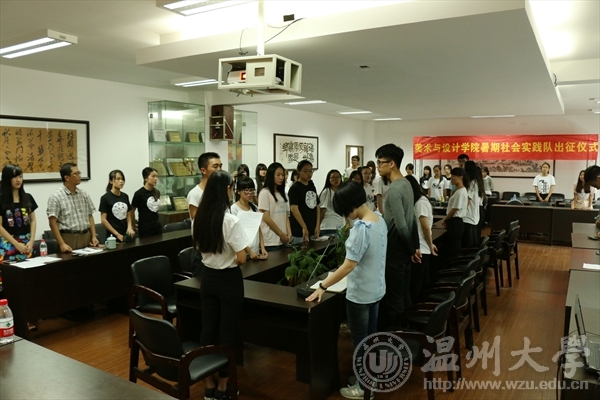 7月7日上午,万象城awc官网登录入口万象城awc官网登录入口2015年暑期社会实践出征仪式在美术楼2B4001举行。万象城官网党总支副书记杨振海、学生科科长叶筱卉、实践队指导老师叶婷、辅导员李燕艳及万象城awc官网登录入口九支实践队的队长和队员们出席了出征仪式。由叶筱卉老师主持仪式。学生科科长叶筱卉首先对2014年的实践工作及成果做了汇报总结,并介绍了万象城官网9支暑期社会实践队队伍基本情况及注意事项。 杨振海副书记对本次实践活动进行部署并提出具体要求。她指出:一、要明确大学生暑期社会实践的重要性和必要性;二、要注重安全实践的意识,安全第一,每天至少两次汇报实践队情况;三、要做好实践材料的收集和整理,为后期评比做好准备。 叶婷老师作为指导老师代表发言,提醒全体队员,务必服从组织安排,做好防暑和安全工作,让社会实践活动在安全的前提下顺利、有效的进行。并寄语美院实践取得优良成绩。紧接着,各实践队队长分别进行各自的实践特色风采展示并宣誓。杨振海副书记为实践队代表授旗。最后在:“社会实践,我们准备好了!”的嘹亮口号中,此次暑期社会实践出征仪式圆满完成。2015年美术与设计学院暑期社会实践的号角已经吹响,美院学子们将以青年人特有的朝气和蓬勃,带来的是一场关于青春的盛宴,精彩还在继续,敬请期待。