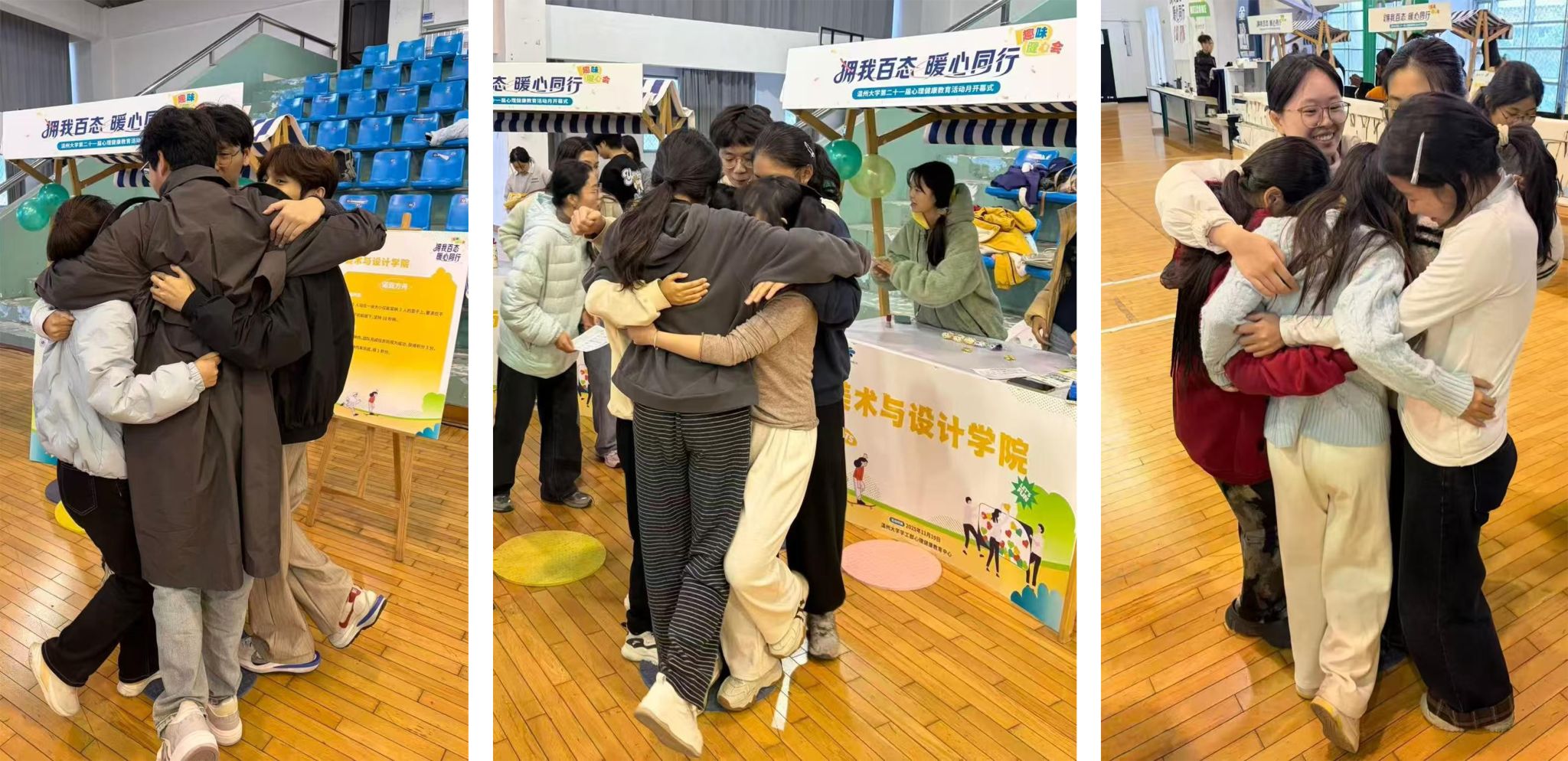 “本来只是来参与活动,没想到和陌生同学抱在一起的时候,突然觉得特别放松!”一位参与游戏的同学分享道。现场还设有心理健康知识展示区,不少同学在轻松互动之余,学习了情绪调节与人际沟通的相关知识,在趣味中收获成长。