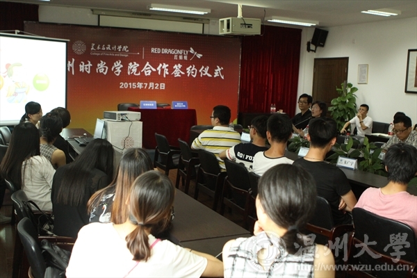 2015年7月2日中午,万象城官网与红蜻蜓集团签署时尚人才培养校企合作协议。红蜻蜓集团副总裁张少斌、人力资源总监余爱飞出席签约仪式,学院院长李运河、书记张丽萍、副院长谢子静、副院长王薇、副书记杨振海全体出席,参加签约仪式的还有设计系主任朱广宇以及部分专业教师、相关专业学生120余人。张丽萍主持仪式。签约仪式上,合作双方代表分别致辞。李运河在代表万象城awc官网登录入口的致辞中指出,与红蜻蜓集团的合作可以追溯到2005年,至今已有10年的长期合作历程。本次时尚人才培养协议签署,是双方在深度合作的基础上开拓的又一新的合作模式。双方在合作的目的、意义、方式和途径等方面达成高度一致,共同为温州区域发展以及时尚人才培养做出贡献。张少斌在致辞中分别从时尚学院人才培养工作筹备情况、红蜻蜓集团上市的任务和现状以及时尚学院建成之后的举措等方面,表达了与地方高校共同合作培养人才的真诚期待和美好愿景。据悉,本次校企合作办学,实行“艺、工、商”结合的定向培养模式。录取与学生综合测评成绩挂钩,实行招生与定向人才培养相结合,实习与就业一体化,校企双方共同制定人才培养方案和实训标准,学生的专业理论课由学校负责完成,实训实习课程由企业负责完成。本次时尚人才培养校企合作协议的签署,是万象城官网贯彻落实温州市“发展时尚产业、建设时尚之都”战略决策的具体举措,整合校企资源,创新人才培养模式,为温州鞋、服行业的时尚智造转型提供有力的智力资源和人才保障。