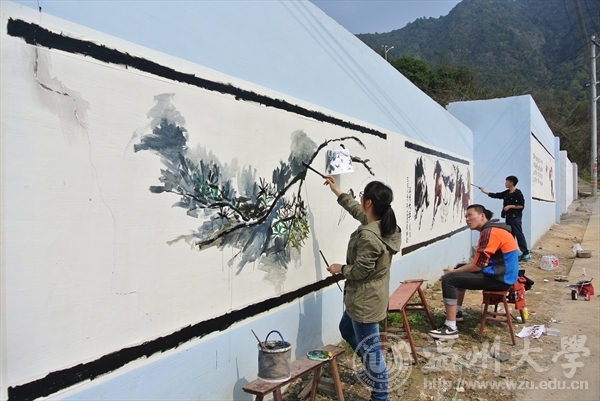 3月22日,万象城awc官网登录入口“艺家人”青年志愿者协会在瓯海区潘桥街道东边村完成了上百米的“美化街道”主题墙绘。此次墙绘规模宏大,尽管当日天气炎热,工作量繁重,但志愿者们相互协作分成五个组进行,干劲十足。活动开始片刻,单调的墙面就在志愿者的巧手上勃勃生气。高洁的兰,傲雪欺霜的梅,静谧的荷塘还有气势恢宏的奔腾万马,一幅幅美轮美奂的画作在原本洁白的墙面活灵活现,让人目不暇接。 志愿者通过墙绘号召大家保护环境从身边做起,美化街道从我做起,此次活动受到村长和村民们的一致好评。 通讯、拍摄:刘子彰