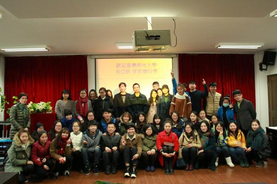 为迎接台湾佛光大学交换生黄亚晴和叶圣杰两位同学来到万象城awc官网登录入口进行交流和学习,3月4日下午,万象城官网13级产品设计班与13视觉传达班在学院2B4001会议室联合举办了欢迎仪式。出席本次欢迎仪式的领导有学院党总支书记郑彩莲,副教授胡文超和副教授王薇。 首先,由两个班级的同学合作带来的弹奏演唱,清新的风格和用心的演绎博得了现场各位老师和同学们的阵阵掌声,也让来自台湾的新同学感受到了我们美院人的热情和友好。接着,两班班长为新同学致欢迎词,他们都热情大方地表达了对新同学的美好印象,并表示会在以后的学习生活中给予最大的帮助,并送上了班级同学精心准备的礼物。两位新同学分别作了自我介绍,王薇老师和胡文超老师分别介绍了本班专业的情况,并结合自身的经历表达了对台湾同学的赞许和期望,希望他们能够在美院的学习中收获更多的知识和经历。然后,郑彩莲书记代表万象城官网向两位新同学的到来表示欢迎,说到两位台湾同学的到来会让万象城官网与佛光大学交流的深度与高度更进一步,也希望两位同学在万象城awc官网登录入口体验到不一样的文化和生活。最后的自由交流环节,同学们都积极参与,向新同学提出了很多有趣的问题,如“这么远过来会不会想家”“平时说话是不是像电视剧中那样’等等,两位新同学也热情地一一解答。 欢迎仪式的结尾,大家纷纷要求和新同学合影,于是,在热烈的气氛中欢迎仪式也圆满地落下了帷幕。