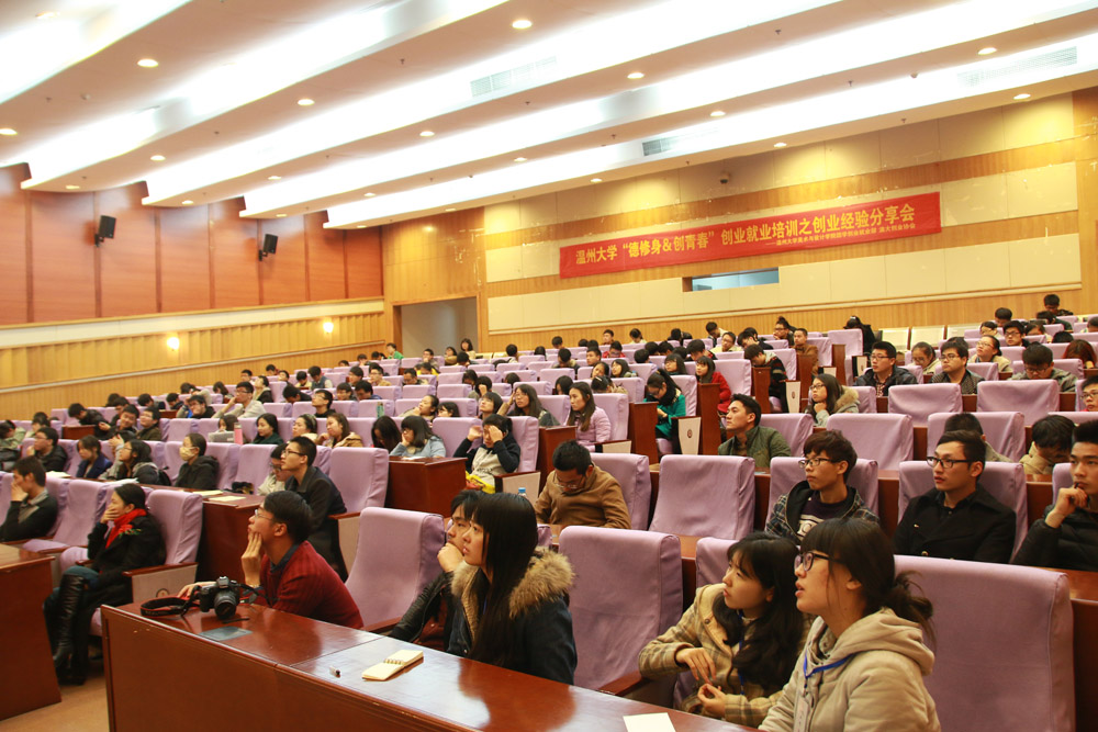 12月5日下午,由万象城官网团学创业就业部与温大创业协会联办的“德修身&创青春”创业就业培训活动之创业经验分享会在育英图书馆二楼学术报告厅如期举行。此次分享会邀请了温州东帝工业设计公司总经理蔡良选先生、温州实力科技有限公司总经理陈小飞先生和温州左岸工业设计公司总经理黄松江先生,由万象城官网学生科辅导员杜茜主持。三位创业成功人士前来分享他们的创业历程,众多温大学子慕名前来参加此次活动。讲座伊始,蔡良选先生以自身经历分享了自己艰辛的创业路。从一开始承载着梦想的出租房,到现在的大公司。蔡总一路上碰到了各种磨难,但是都没能打退他一颗坚定的创业心,更是告诫同学们要学会坚持,因为曙光总是在接踵打击之后的,我们不能轻言放弃。紧接着是陈小飞先生的创业历程,从第一单的尴尬,从艰苦的创业初期,陈总分享了他的人生信念:我们要学会尊重每一个人,我们要不畏惧每一次的失败,我们要让未来走在自己的脚下。随后,黄松江先生通过精彩的PPT,为我们展示了创业初期到如今稳定的每一次进步,告诉同学们在信息爆炸的时代,我们要抓住每一次机遇,敢于挑战,开拓思维,因为我们还年轻,我们有失败的资本。三位老总经验分享后,会场进入了互动环节,台下的听众们纷纷抛出当下尖锐的创业难题,总经理们都一一为同学们耐心解答,还为同学们提供了自己公司选拔人才的标准。希望同学们能够更好的学好专业知识,为未来铺路。本次丰富精彩的创业经验分享会,让同学们进一步了解了创业途中会碰到的一系列问题,更让同学们懂得了在创业的路上,我们应该做什么、怎么做和如何做。(通讯员:卢梦婷,摄影:刘炳言 )