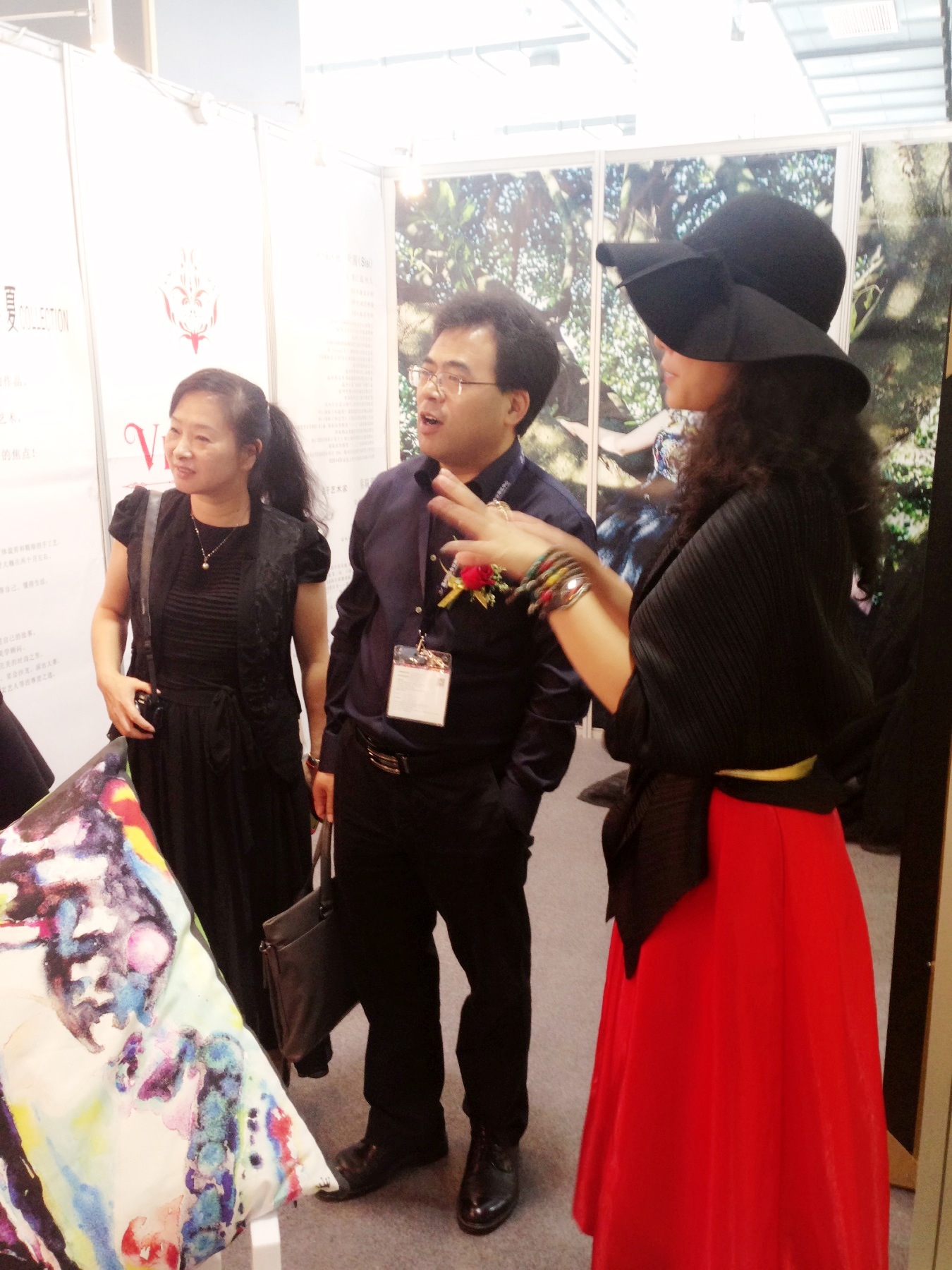 在近日2014温州国际时尚博览会的现场,一个很有特色的展位以惊艳的视觉捕获了参观者的眼球。象画廊、又似戏曲舞台,看似传统却透着时尚,这便是由温大万象城awc官网登录入口副教授叶茜携手著名画家蔡瑞蓉女士(温大美院教授)的“绝代风华”跨界系列作品。她从艺术作品中提炼画面的视觉,让传统民间皮影文化成为时尚艺术,运用现代数码印花的工艺技术以鲜艳的色彩真实的传递了这一季独具魅力的焦点!本次作品叶茜老师同时结合了指导学生的国家创新创业课题的项目“IN-数码印花创意产品研发工作室”,她与参与指导的叶婷老师一起研究数码印花的工艺和面料效果,并让学生参与图案设计及应用,作品有时装、礼服和家纺等应用产品,在工艺制作上也得到了浙江丽丰服装科技有限公司和杭州宏华数码印花的大力支持。温大万象城awc官网登录入口院长李运河教授和服装系主任陈明艳教授特意到场观看,并高度评价!