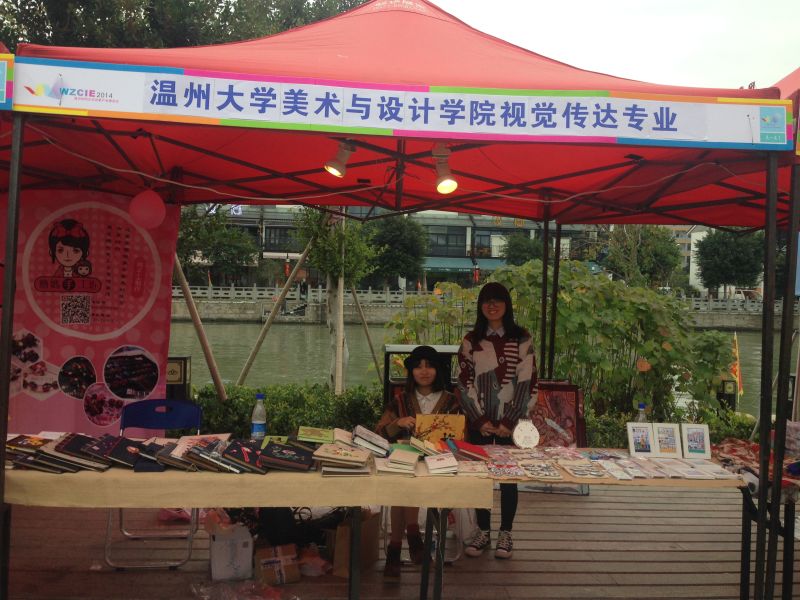 2014温州时尚文化创意产业博览会在我市隆重举办,它是一场历时7天的时尚文化饕餮盛宴。以“创意都市、时尚生活”为主题,旨在加快推动温州文化创意产业发展,带动“温州制造”向“温州智造”转变。 为了积极响应和推动温州文化立市的政策,也为了激发学生的创意意识,视觉传达专业周瑾等老师结合课程内容,组织12设计和12师范班学生参加秦际白鹿洲文化村创意市集活动,学生的手创本等作业颇受市民的青睐。让学生在活动中交流创作经验,展示最新的原创手作,感受获得市场肯定的成就感,这就是学生参加此次活动的初衷。 希望,以后万象城官网的设计教学能把握更多的此类互动平台,来推动万象城awc官网登录入口视觉传达专业文化创意人才的培养。