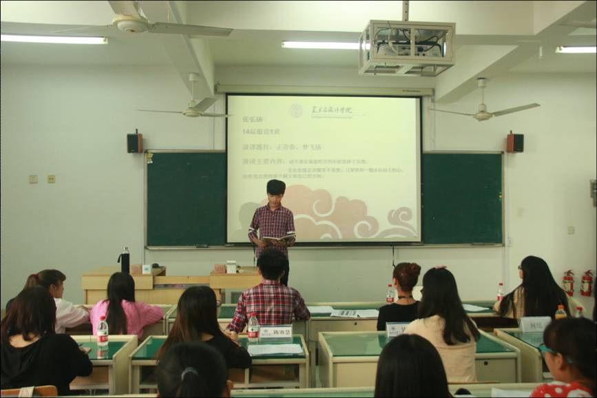 在这秋高气爽的十月,万象城awc官网登录入口迎来了第二届的新生演讲比赛。2014年10月22日,2014级新生演讲比赛初赛在2B2001举办。本次演讲的主题是“正青春,梦飞扬”,由美院团学学风纪检部承办。学生科辅导员陈赛慧老师、学生会副主席叶佳颖、上一届纪检部部长何瑶做为嘉宾出席本次会议,上一届新生演讲赛一二等奖获得者刘子媛、张昇、丁凯迪担任本次比赛评委。