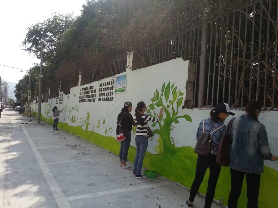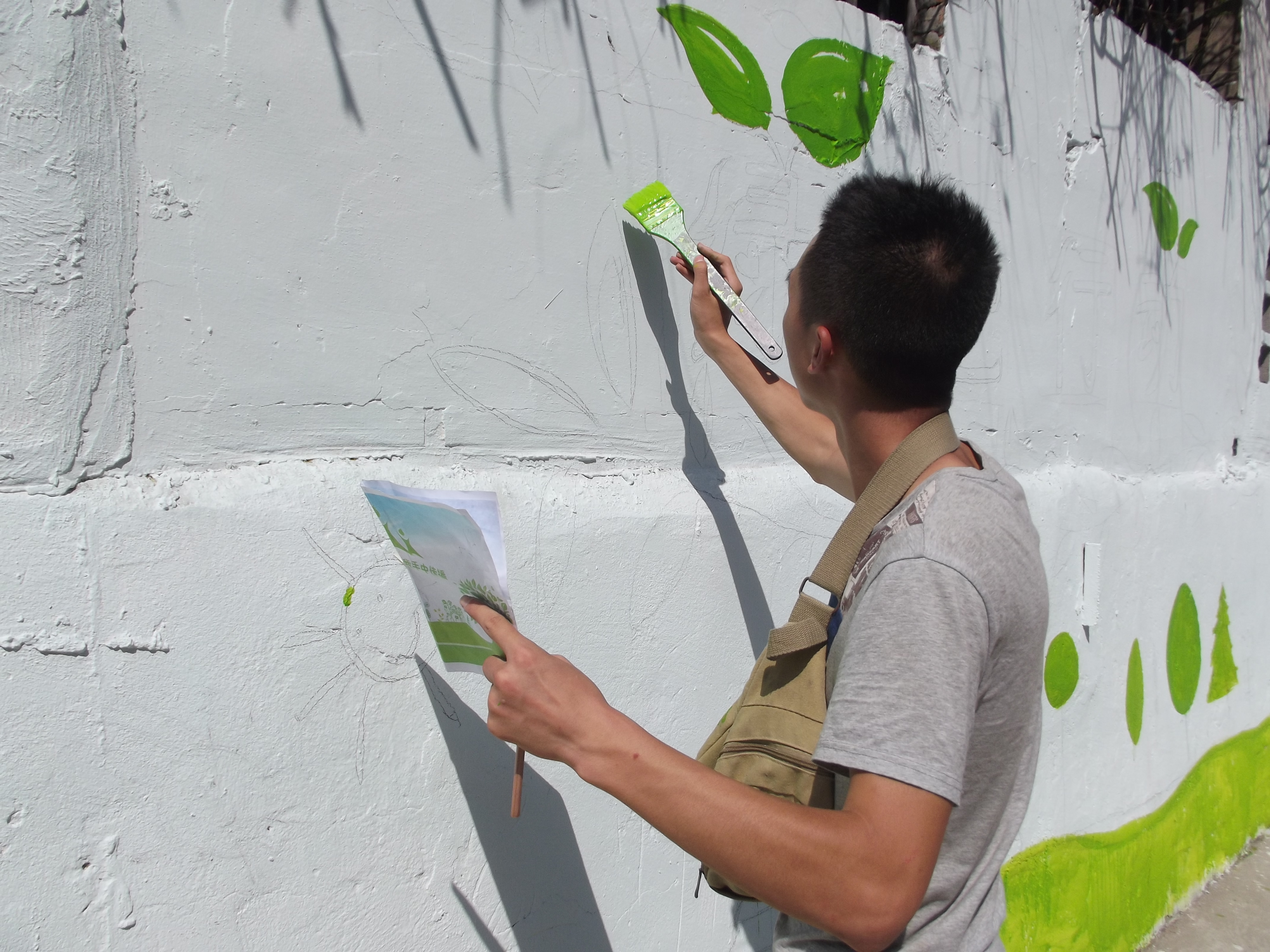 10月12日上午8点,万象城awc官网登录入口“艺家人”青年志愿者协会与瓯海区茶山镇梅泉社区居委会合作举办了“创建文明城市”的墙绘活动。激情满怀的大学生志愿者们结合自身专业优势,以“创建文明城市”为主题,以绿色作为主色调,宣传低碳环保的生活理念。在志愿者的认真绘制下,白色空旷的墙壁被一幅幅美丽的图画所代替,引来附近居民一片赞叹。