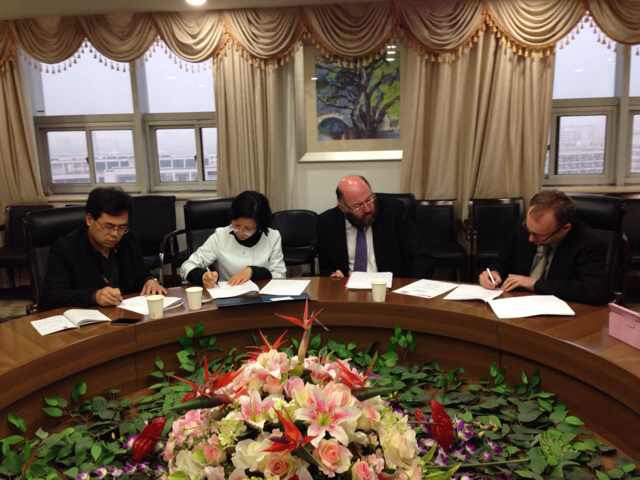 随后,李运河、叶苗和副院长共同签署了两校合作协议。两校主要针对艺术类专业,将在教师互访、学生交流、合作科研等领域开展合作。Andy Collop副校长一行专门在万象城awc官网登录入口和师生进行了互动交流,还到我校校史馆、民俗馆以及学院实训中心进行了参观。