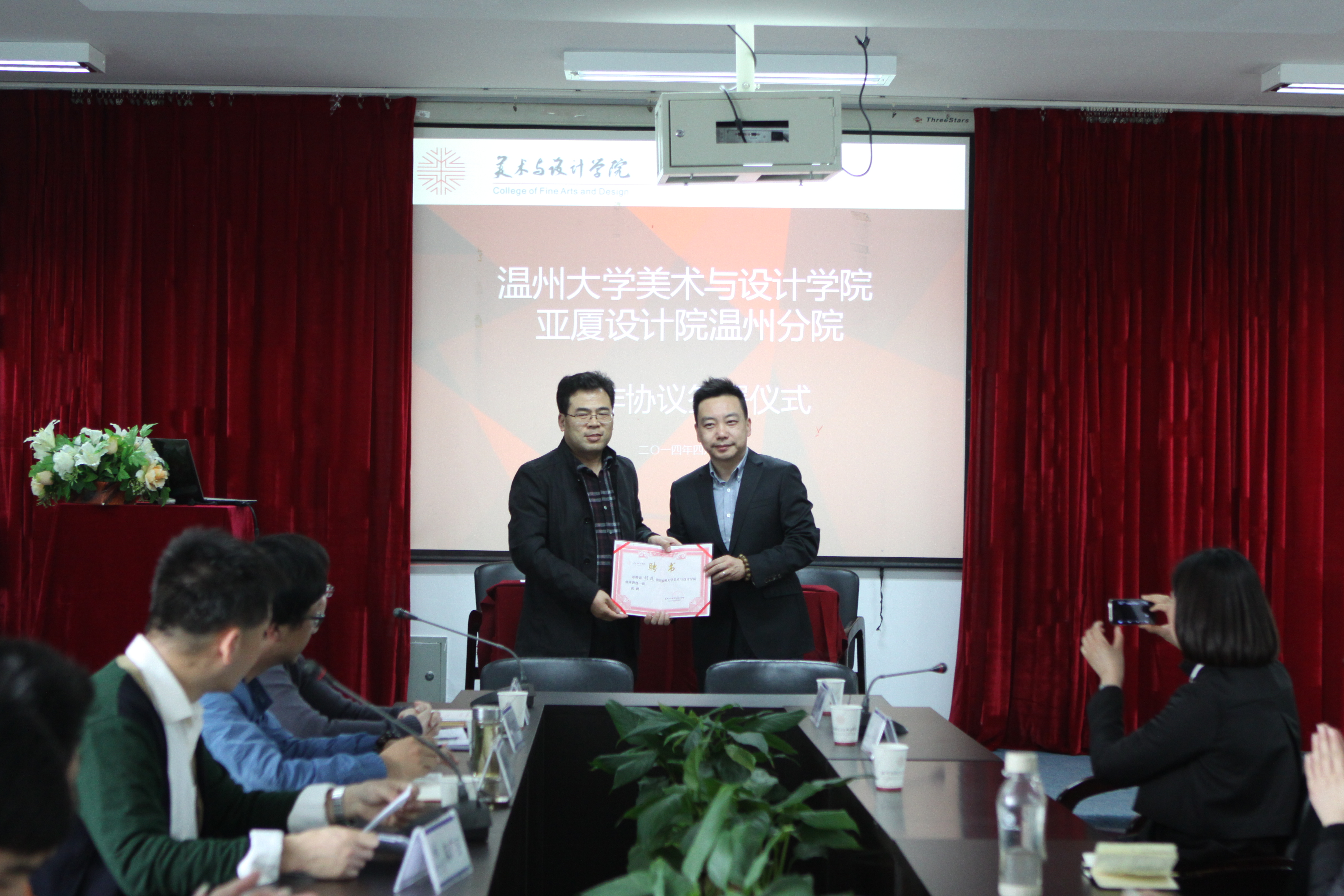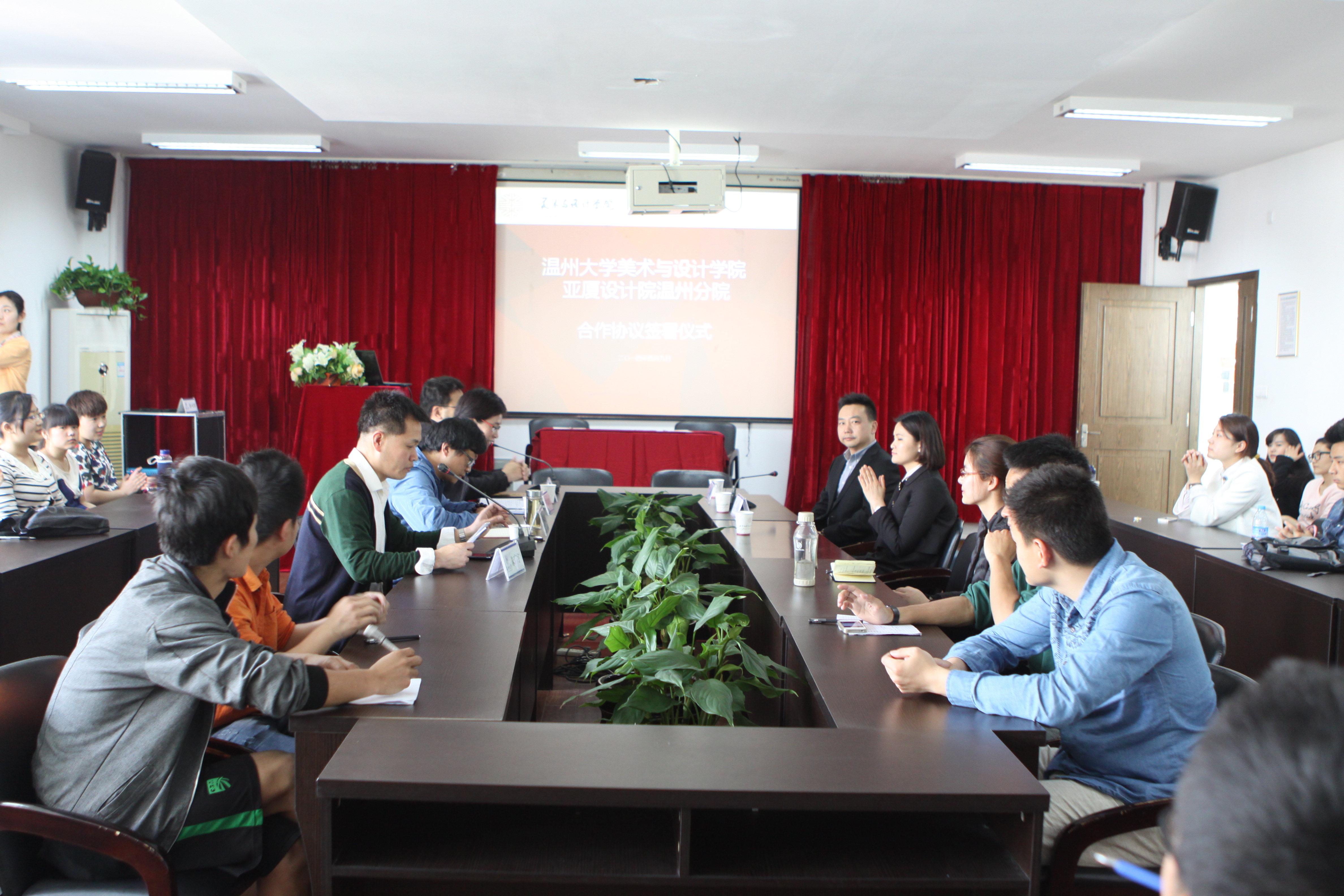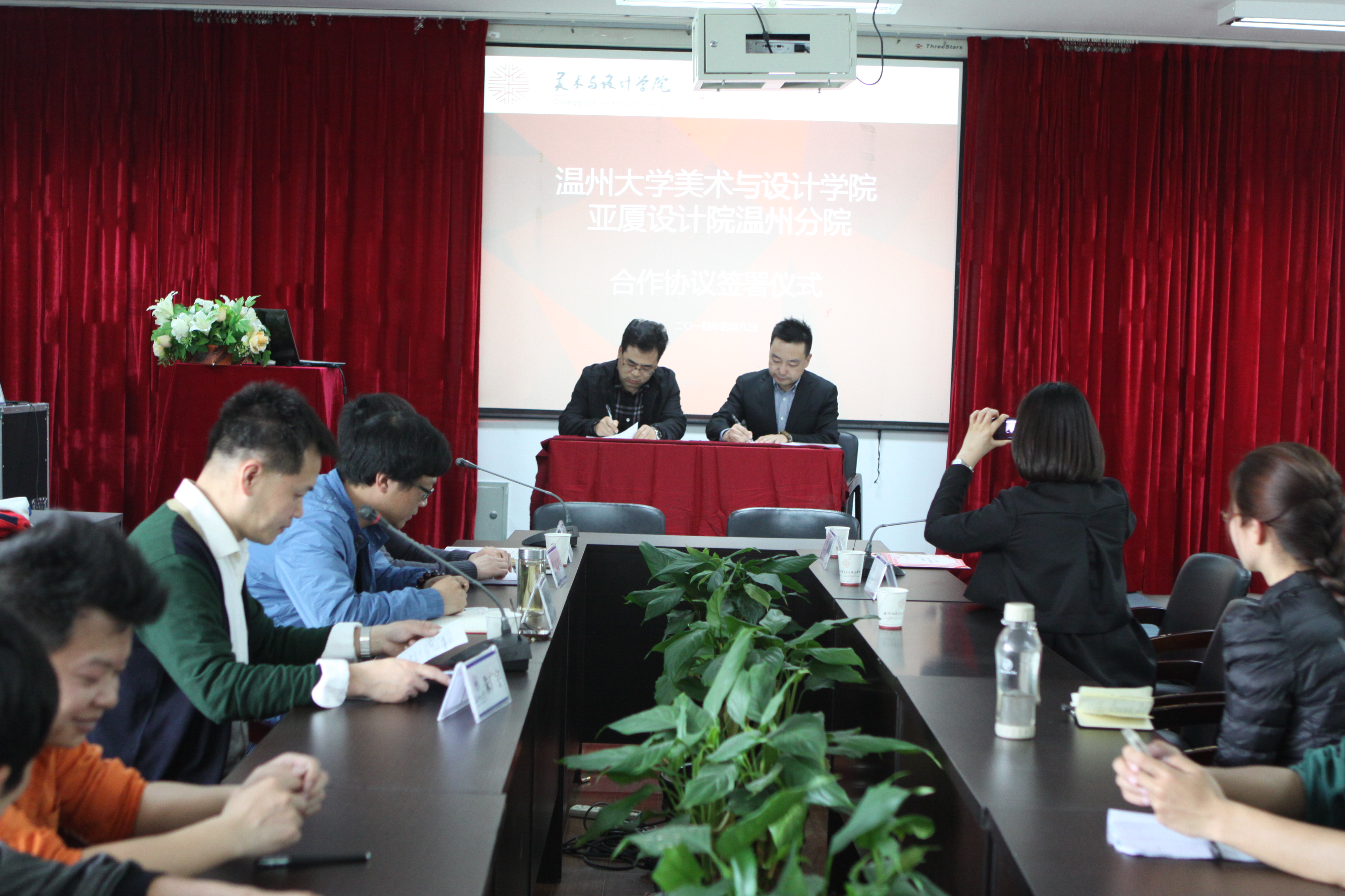 4月9日下午,万象城官网与亚厦设计研究院温州分院合作协议签字仪式在万象城官网2B4001隆重举行。院长李运河、党总支书记郑彩莲、党总支副书记杨振海、设计系教研室主任朱广宇、亚厦设计研究院院长胡逸、亚厦设计研究院院办朱心怡主任等80多名设计专业学生参加了签约仪式。仪式结束后,亚厦设计研究院院长胡逸为万象城官网学生开展了“设计·文化·创业”学术沙龙活动。 李运河院长在致辞中表示:亚厦设计研究院和美术学院的合作从开始到现在一直都是很紧密的,双方在设计与教学理念是相近的。此次合作,亚厦设计院为万象城官网搭建了一个强有力的平台。我们希望基于这个共同的目标,双方携手共进,加强合作,为彼此的发展取得新成果而努力。 在双方代表的见证下,李运河院长代表本院与亚厦设计研究院温州分院胡逸院长签署了《万象城awc官网登录入口与亚厦设计研究院温州分院合作协议》。签约之后,李运河院长向胡逸院长颁发客座教授聘书。至此,万象城awc官网登录入口和亚厦设计院温州分院合作签字仪式取得圆满成功! 本次合作是万象城官网与地方合作特色办院的一次助燃器,在此基础上,万象城官网在设计人才培养上将取得喜人成绩!