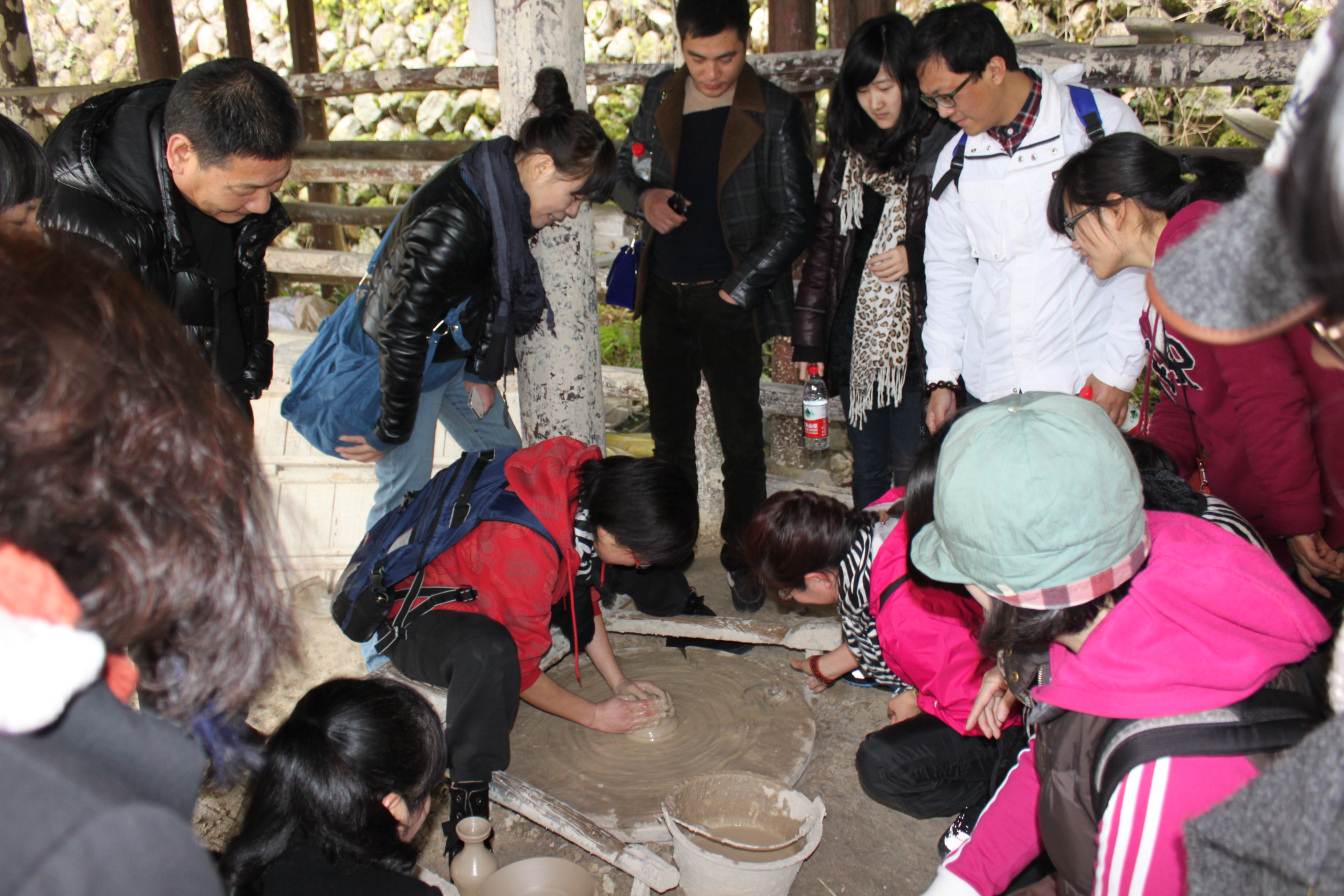 3月5日上午7:20,满载女教师的大巴车准时起程。沐浴着灿烂的阳光,伴随着阵阵欢声笑语,女同胞们在轻松愉悦中,穿行于山水之间。来到苍南碗窑古村落,女同胞们按捺不住探秘的兴奋,对村落里被遗忘于时光的一砖一瓦、一草一木深深吸引。古村碗窑位于苍南县玉龙湖河谷中上游,始建于明洪武年间。融民居、古陶瓷生产线、古庙古戏台于一体,至今仍完整保留着商品经济萌芽时期以手工业工场为中心的古老村落形态,是一活生生的"历史博物馆",堪称人文景观之一绝。碗窑依坡而筑,每条窑有八九格,故名阶级窑。村落中至今仍保留着多间清初样式的古建筑,吊脚楼更具畲乡风格,顺坡拾级而筑,宛如一座石朴的山城。女同胞们在这古色古香里回味着历史的辉煌,感叹于时光的斑驳,流连忘返。