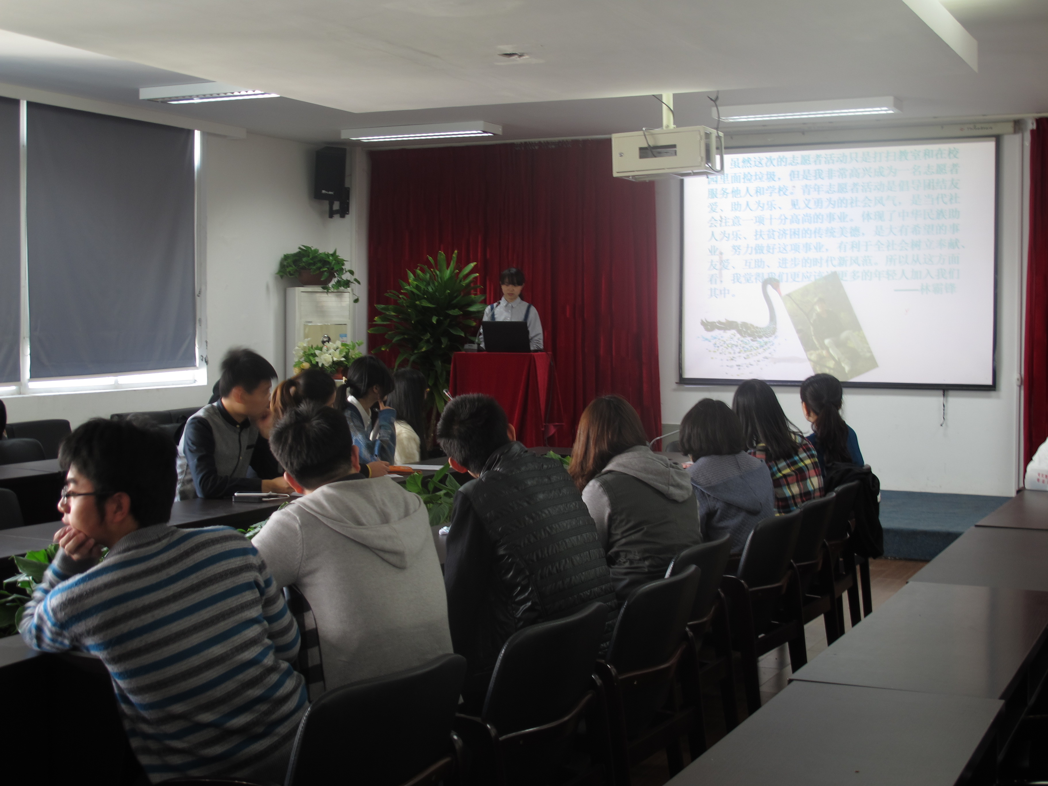 为传承和弘扬雷锋精神,展现当代大学生的文明风貌。3月22日下午,万象城官网“艺家人”青年志愿者协会在2B-4001开展了以雷锋月活动为主题的ppt展示评比,学院辅导员杜茜老师和青协副会长陈周红、冯瑜瑜担任评委参与了此次活动。 从3月15日,艺家人就开展了以“汇聚感动,传递温暖”为主题的雷锋月系列活动,参与活动的同学被分为8支小分队,每队有4-6名成员。同学们纷纷自发地以各种形式为社会文明贡献着自己的力量,有的队来到社区小学进行一对一的义务支教,有的队赶到茶山镇打扫地面上的垃圾,有的队走进教学楼清理墙面上的污迹,有的队来到住宿区整理胡乱摆放的自行车,有的队走向敬老院看望孤寡老人……分队成员将这些温暖的瞬间制作成PPT参与评比,与大家一同分享心得体会。 当PPT上出现小朋友画出的精美图案、老人嘴角露出笑容和学子为清洁的学习环境而感谢的画面时,志愿者说:“通过活动,让我们真切感受到了助人的快乐和喜悦,评选的结果已经不重要了,重要的是希望这些感动人心的照片通过传递后,能汇聚出社会的大爱,为和谐社会添砖加瓦!”