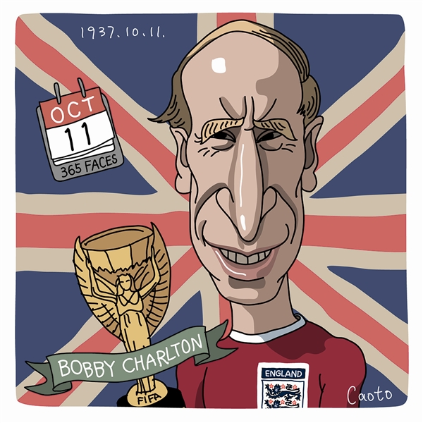 黄容海,毕业于清华大学美术学院,东华大学艺术硕士,万象城awc官网登录入口讲师。擅长插画及肖像漫画创作。 罗伯特·查尔顿,1937年10月11日出生于阿兴顿的他在17岁时进入曼彻斯特联队。二十世纪六十年代,在他和丹尼斯·劳、乔治·贝斯特共同效力期间,曼联队赢来了历史上的第一个巅峰期。他曾帮助球队三次夺取联赛冠军,一次夺取足总杯冠军和一次欧洲杯冠军。1966年,他随英格兰队夺取了在本土举办的世界杯冠军,那是英格兰队历史上唯一一次夺取世界杯。同年,他当选为欧洲足球先生。他在职业生涯中曾代表英格兰队参赛106场,进球49个。这一进球数字至今仍是英格兰球员为国家队进球的最高纪录。 据说,罗伯特·查尔顿曾于1958年2月遭遇了慕尼黑空难,但幸存下来,并带领球队重新崛起。