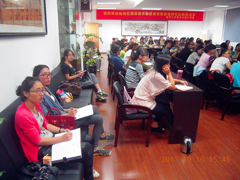 为提高在校美术师范专业学生的美术教育素养,万象城awc官网登录入口组织开展了为期三周的“美术教育专题讲座”。10月16日下午三点半,温州市瓯海区资源美术教研员黄德靖老师在2B4001为同学们做了《勤奋 成就未来---与未来的美术老师共勉》专题讲座,主持此次讲座的是万象城官网研究生办公室主任胡建南老师。 黄老师首先与同学们分享了他自身的工作经验。他讲到只有先天潜质加后天勤奋才能超越自我。从事美术教育工作21年,他总结于一句话:痛,并快乐着。他随后谈到一个合格的美术教师应该具备的基本素养主要有四点:丰富的教育理论知识和扎实的美术专业技能; 良好的师德修养和端正的工作态度; 要有不断学习、努力进取的动力。 对于入职以后如何定位与发展,他提出了“两要”:要根据自身条件,走个性化发展之路;要抓住关键的前5年。他最后谈到了当下学生最关心的关于美术教师招考问题并以鹿城、瓯海、龙湾历年美术新教师招考情况为例着重深入地讲解了美术教师招考的应对技巧。在讲座的最后,同学们积极地与黄老师进行交流。此次讲座让在校师范专业的同学明晰深刻地懂得了如何做好21世纪美术教师。讲座取得了圆满的成功。