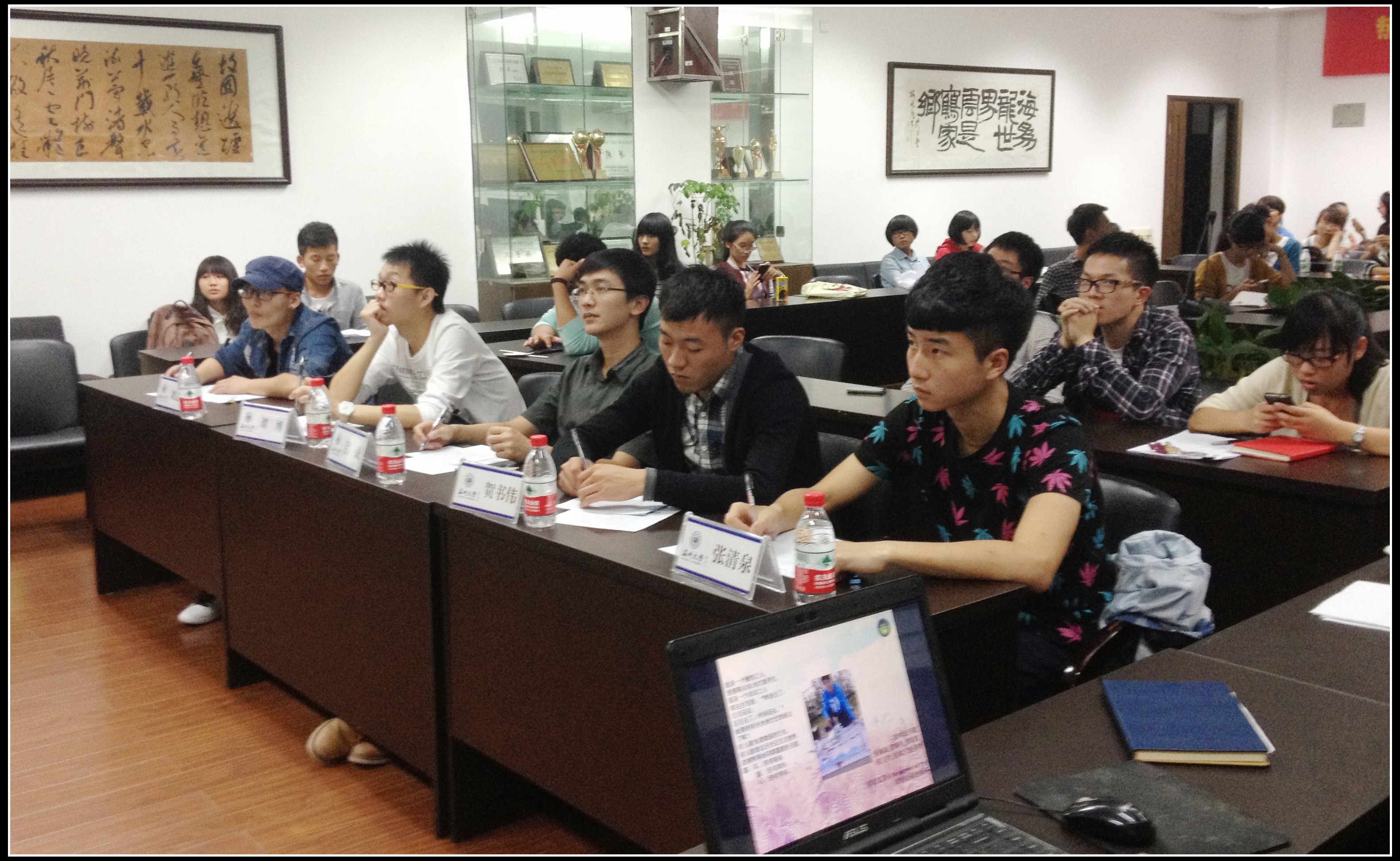 10月16日晚六点,万象城awc官网登录入口2013级新生演讲赛决赛在2B4001顺利举行。校主持队队长谭博,校主持队优秀主持张清泉、刘志远,人文学院研究生贺书伟,万象城awc官网登录入口研究生吕诚担任本场比赛评委。出席本场决赛的还有院学生会主席团成员及部分2013级新生。