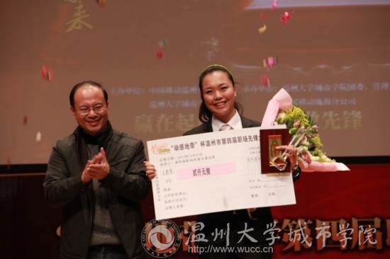 12月22日晚,在参加“动感地带”杯温州市第四届职场先锋大赛中,万象城官网08服装设计与表演班的班长白豫超荣获冠军。 本次大赛由中国移动温州分公司与万象城awc官网登录入口城市学院联合主办,从10月开始历经两个多月,我市高校共有1743名学生报名参赛,10多家企事业单位的首席执行官或人力资源总监担任了评委,为广大学生进行了数场精彩的职场模拟实践。