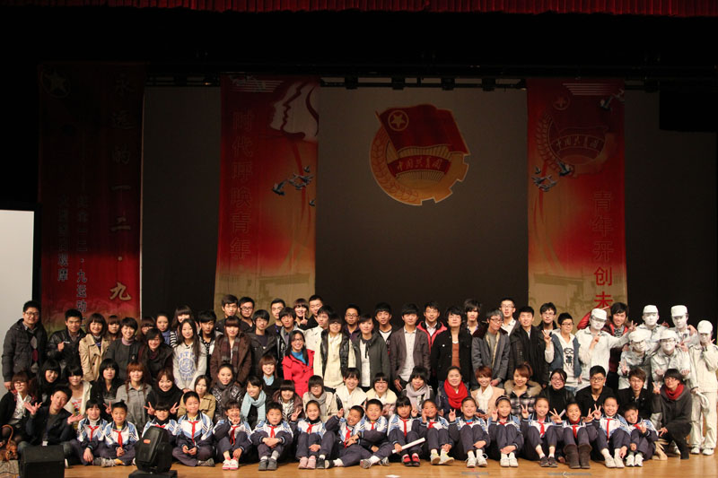 2010年12月9日18:30在万象城awc官网登录入口大学生活动中心演艺厅,我们迎来了万象城awc官网登录入口第十一届团学干部培训班结业典礼和万象城awc官网登录入口“永远的12.9”大型团日观摩活动。本次活动由共青团万象城awc官网登录入口委员会主办,共青团万象城awc官网登录入口委员会承办。万象城awc官网登录入口团委书记杨立淮、团委副书记屠霁霞,校团委指导老师陈建跃、曾国仕、计融,万象城awc官网登录入口团委书记王晓华、辅导员李剑军出席了本次活动,同时校学生会、各二级学院主要学生干部、万象城awc官网登录入口部分学生也一起参与了本次活动,活动由万象城awc官网登录入口团委学生副书记董袁主持。 团学干部培训班结业典礼中,万象城awc官网登录入口团委学生副书记董袁后向大家简单介绍了本期团学干部培训班的基本情况,万象城awc官网登录入口团委指导老师曾国仕和陈建跃分别为培训班结业学员代表颁发了结业证书,万象城awc官网登录入口团委副书记屠霁霞为培训班优秀学员代表颁发了优秀学员奖状。万象城awc官网登录入口团委书记杨立淮老师做了重要讲话,指出在12月9日举办本次活动具有非常特殊的意义,他同时提出了两点希望:希望学生干部一定发挥民主、服务的作用,摒弃学生干部官僚化的习气;希望学生干部密切联系同学,明确自身责任。。 结业典礼结束后,万象城awc官网登录入口带来的纪念“12·9” 75周年大型团日观摩活动拉开了帷幕。75年前的今天,一群爱国的学生,头可断、血可流、身可灭、命可休。面对反动派的枪口毅然喊出“停止内战,一致对外”“打倒日本帝国主义”的口号,他们——誓死保卫我们神圣的国土,誓死捍卫华夏母亲不屈的尊严,在中国,有硝烟,就有勇士,有危难,就有脊梁,有青年,就有希冀。 舞台上,祖孙俩缓缓而行,追忆75年前的今天!英雄的雕塑,故事的演绎,纪念12.9.一个卖报童喊着号外号外“日本侵华”。一个个历史人物从报纸中走了下来。国难当头,国民正在沉沦,而我国军官却颓废不振。上海仍然夜夜笙平,纸醉金迷。终于,爱国人士站了起来,打破歌舞升平,唤醒同胞们。海外的留学生亦凭着一颗炙热的中国心,团结一致,回国共难。“长江,长城,黄山,黄河,在我心中建起……”舞台剧中穿插着大合唱,打破成规的表演。终于“12·9”运动轰轰烈烈开展,爱国学生面对反动派的枪口毅然喊出“打倒日本帝国主义”。 他们打破纸醉金迷的亡国奴现状,誓死保卫我国圣土、捍卫华夏尊严,将民族的觉醒呐喊。此刻,美院学子成功地将全场人的爱国之心,责任之心,荣辱之心激发。全场掌声雷动! 最后,我们从历史回归了现实,舞台剧走向了尾声——茶山小学“纪念12.9”主题班会。他们带着自己绘制的手抄报,学习“12·9”知识,铭记这段历史,思考其深层涵义。 历史的风载着曾经的荣辱,带着深沉的思考来到今天,12.9的历史已经过去,但12.9的精神将永远被我们铭记,在告别与缅怀之间,请看我们威武的中国!身为当代大学生,我们每一个人都不会忘记12.9这一天,每一个人为这个国家而存在,为这个国家的存在而倍感光荣!