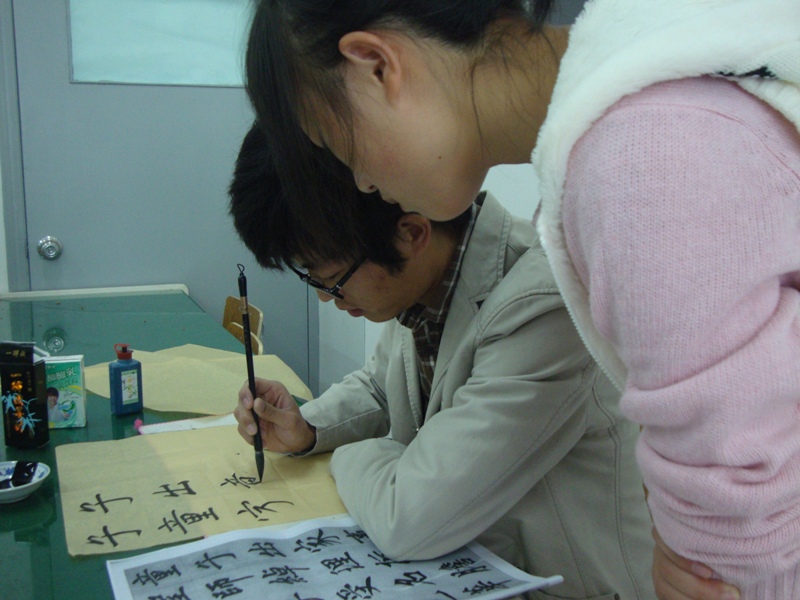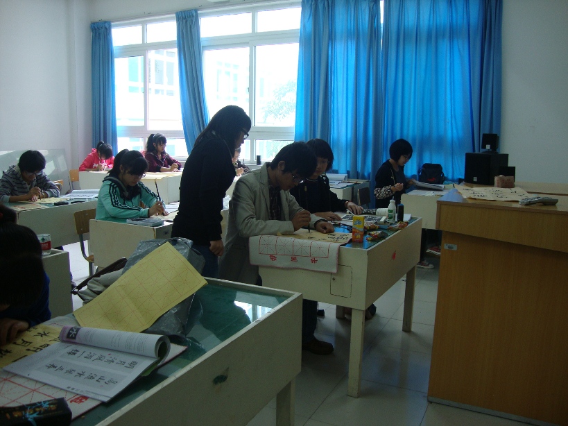 2010年11月21日上午9点在万象城awc官网登录入口2B2001教室和2B4001教室内,万象城awc官网登录入口书法培训素拓班正在开始本学期的最后一堂课。 该培训班是万象城awc官网登录入口团委素拓中心开设在万象城官网的一个书法培训班,由万象城官网08美术国画班的陈龙龙同学担任该班指导老师。该班于本学期第六周开课,累计上课次数6次,上课时间固定在每周周日上午9点至11点半在万象城awc官网登录入口2B2001和2B4001,该班成员来自学校各个学院,其中正式学员40余人,旁听生10多人。 根据学生上交的心得来看,陈老师很尽职尽责,而且循循善诱,在学生中口碑很好。陈老师不光光有着老师的身份,还是一位学长,更贴近学生生活,具有亲和力,有利于彼此间的沟通交流,对学生们书法水平的提高有很大帮助。在谈话中了解到该班在上课期间曾有过一次表演活动,老师当堂表演4分钟的书法,技艺精湛,赢得了学生们的一致好评。课堂上,同学们都认真在练习毛笔字,学习氛围浓厚,老师则在一旁指导,给出了很多宝贵的建议。 据悉,在此次课堂结束之后还将开展一次书法表演,这会是一次很好的书法交流的平台。大家尽请期待!