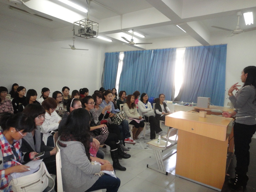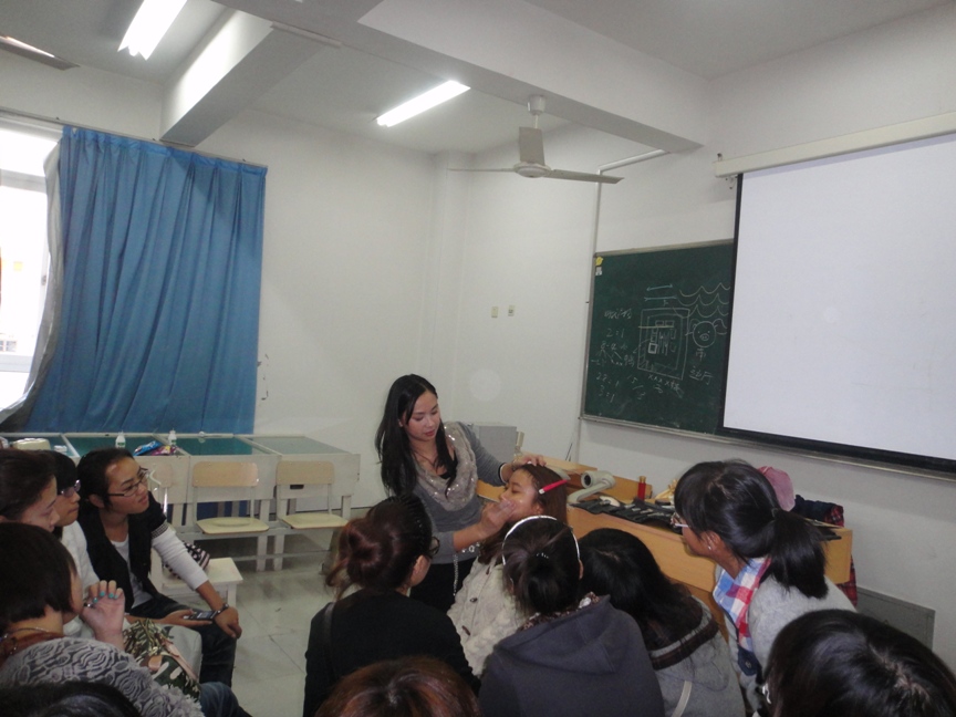2010年11月20日星期六14:00~16:00,在美院2B3001,雪思美容院院长、医学院WinGirl俱乐部指导老师朱来顺,为万象城官网的化妆培训素质拓展班画上一个完美的句号。 此次培训是朱老师在本学期第四次给大家辅导。其热烈的掌声,阐释着大家对本次培训的渴求和对朱来顺老师的喜爱。朱老师说,化妆是艺术。她要求人们在化妆之前先了解自己今天穿了怎样的服装,代表着怎样的形象以及自己的性格;希望每个人能了解自己面部的优点和缺点各是什么。然后,她让同学来当模特,一步一步地教同学们怎么样打底、修眉、调肤色、画眼线、眼影、腮红和唇彩。而同学们也是热情高涨,积极提问,踊跃参与其中。在示范的过程中,她也再三强调该注意的地方。比如定妆时要用散粉,补妆时要用粉饼,刷子半年洗一次,而在平时,只要用散粉洗就可以了……示范结束后,她则让同学们自己亲手实践。 这次培训,不仅让爱美的女生体验到了化妆带给她们在外表上的飞跃,更是让她们学习到了化妆的真正技巧。
