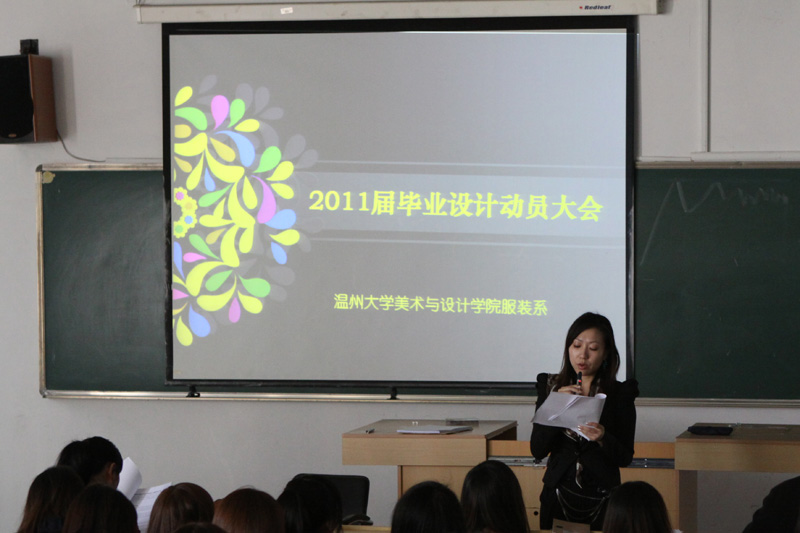 根据学院对毕业设计和毕业实习的总体部署与安排,11月3日下午,服装系在3A201教室召开了2011届学生的毕业设计、毕业实习动员大会。服装系各教研室主任、指导老师及全系毕业生参加了会议。大会由服装系主任姜岩主持。 姜岩分别就毕业实习、毕业设计(论文)的重要意义、大致安排情况以及注意事项等为同学们作了一个总体的部署和充分的思想动员,他指出,毕业设计、毕业实习是课堂知识转化为实践技能的重要过程,是理论结合实际、提高综合能力的必经之路。他强调了毕业设计、毕业实习环节的重要性并提出了几点要求:1、毕业设计、毕业实习既是完成教学任务的一个环节,同时也是用人单位挑选毕业生和毕业生就业的一条有效途径,希望把握时机,通过实习促进就业;2、毕业实习期间务必将安全放在首要位置,严格遵守实习单位的各项规章制度,注意人身和财物安全,严格按照学院具体要求完成实习任务;3、希望大家秉承“求学问世,敢为人先”的校训,吃苦耐劳,踏实勤奋,谦逊诚信,开拓进取。并希望全体同学圆满完成毕业设计、毕业实习的目标,顺利走上理想的工作岗位。 服装设计教研室主任陆琰、服装工程教研室主任陈明艳、服装展示教研室主任金晨怡分别针对各专业方向的毕业实习与毕业设计提出了详细的实施方案,具体就毕业设计、专业实习时间安排、毕业论文选题和论文撰写规范、毕业答辩时间及相关要求作了详尽讲解。 会后,各专业方向学生就选题、选导师与各位指导老师做了进一步沟通。