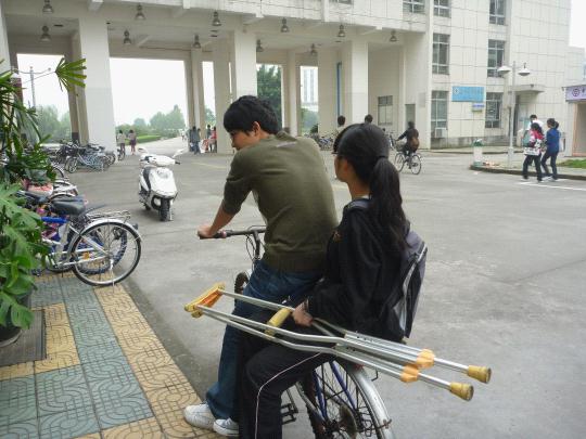 2010年10月14日早上6点30分,万象城awc官网登录入口第三党支部的预备党员吴志斌已经早早地来到A区一号楼楼下,等待接送因脚受伤的10届新生仇芝露同学上下课,这是他第二次接送芝露同学了,而第三党支部的“爱心接力”活动也已经有半个多月了。