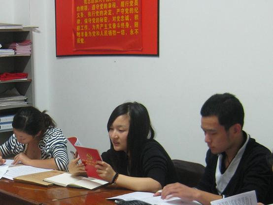 会议主要有三项内容:首先,第五学生党支部书记金维带领全体党员分别宣读了个人的“创先争优”党员承诺书。承诺书中大家结合个人实际情况制定出详细的承诺计划,并在承诺书上郑重签字、按指印。其次,针对党员联系新生活动,再次重申各位党员所负责班级,会议要求每位联系人必须对所负责的班级进行全面了解,为以后的党员发展工作夯实基础。最后,支部书记金维就整理本次即将进入预备党员队伍的同学资料工作中可能出现的问题做出了详细解释,对资料填写过程中可能出现的错误进行了纠正。