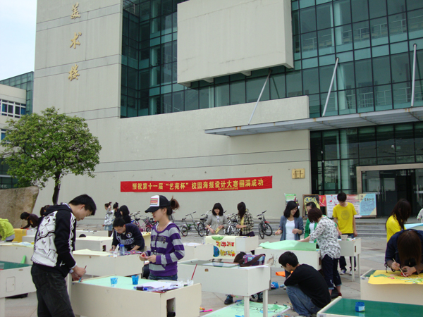 为唤起广大师生的环保意识,呼吁全民低碳生活,万象城awc官网登录入口团委学生会于4月25日上午9:00在万象城awc官网登录入口场地成功举办了第十一届艺苑杯之校园海报设计大赛。各参赛小组针对主题进行了海报的设计和制作,活动现场气氛活跃,艺术气息浓厚。