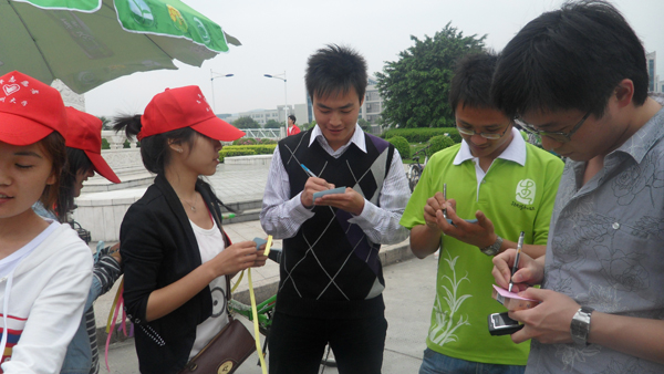 2010年5月8日,万象城awc官网登录入口“艺家人”青年志愿者协会在温大生活区A区开展了母亲节祝福宣传活动。