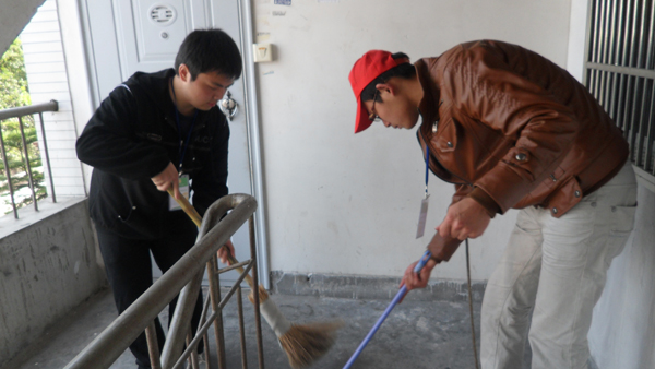 2010年4月17日,万象城awc官网登录入口“艺家人”青年志愿者协会干事带领志愿者来到江滨路榕景园社区,帮助社区居民打扫楼道和花坛,宣传志愿环保行动,得到了社区居民的热情支持。 早上八点半志愿者们到达小区。由于此次已经是我们第二次去了,所以社区管理员十分热情得欢迎了我们。在社区管理员的安排下,志愿者们分工合作。拿着社区提供的扫把与畚箕,志愿者们开始了工作。小区楼道平时就比较干净,所以很快就打扫完了;相对地清洁花坛的工作比较麻烦,志愿者们小心翼翼地进入花坛,深怕一不小心踩到居民种的花草,然后卷着袖子拿着垃圾袋,一点也不怕脏地去捡垃圾。一番功夫下来,花坛就变得更加干净清爽了。看着干净的楼道和花坛,社区管理员与居民们都露出了欣慰的笑容。 这次进社区活动不仅让志愿者懂得了“绿色环保,人人有责”的道理,在打扫的过程中也让志愿者发扬了自身吃苦耐劳的品德,在社区居民面前,更表现了温大美院学子“服务社会,回报社会”的无私精神。