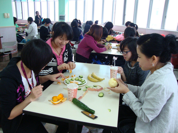 4月18日,万象城awc官网登录入口在万象城awc官网登录入口学生宿舍A区二号食堂二楼举行了2009-2010学年第二学期“水果大比拼”水果拼盘比赛。此次比赛意在丰富万象城官网学生的课外生活,发挥我们新时代大学生的想象力,增强寝室同学之间的感情。 下午,万象城awc官网登录入口学生宿舍A区二号食堂二楼出现了一片热闹非凡的景象。万象城官网学生以寝室为单位开展了一场心灵手巧的比赛。各组选手开展自己天马行空的想象力,用自己灵巧的双手,将一个个平凡至极的水果经过雕、刻、镂、切等工序,拼装成各式新颖的造型。使人目不转睛地看着,却忍不下心去吃这件艺术品。 虽然这次比赛的时间不长,提供的水果也有限,但是在寝室同学的团结合作之下,可谓化平凡为神奇,在让水果美丽变身的同时,更是增进寝室成员之间的感情,培养他们的动手能力及团结合作精神,为构建和谐寝室打下坚实基础。