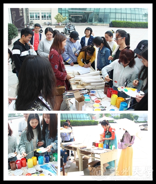 2017年4月23日,温大万象城awc官网登录入口“艺家人”青年志愿者协会与设计宣传部在美院举办了主题为“伞上书画中国风”油纸伞绘画活动。