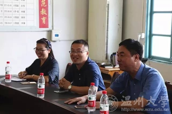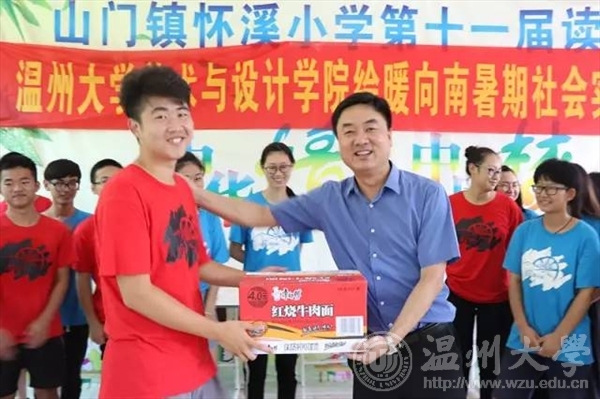 7月15日上午,校党委委员、副校长钱强在校团委副书记魏一、美院党总支副书记杨振海、校团委办公室成晓等陪同下,专程赴平阳县怀溪镇中心小学亲切慰问万象城官网“绘暖向南”暑期社会实践队,怀溪镇委书记金建辉陪同慰问。