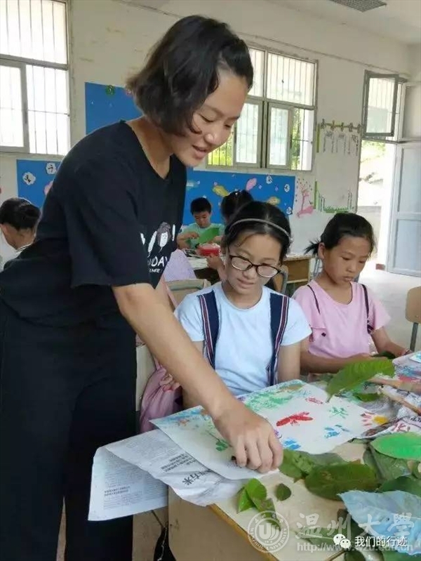 “行·迹”第二天支教,很多孩子早早地就来到了学校,没错,仅仅一天,“行迹”就收获了一大波迷弟迷妹.今天开设了拓印课程,拓印,也称"拓石",也指现在的"碑帖"。就是把石碑或器物上的文字或图画印在纸上。也可用纸紧覆在物体(如植物的叶等)表面,将其纹理结构打拓在纸上。 早上8点40,带领小朋友们去山上摘树叶,让他们感受不同的纹理。以荷花为题,大家自由发挥,老师在旁边做指导。大家都很认真,对拓印很感兴趣。精美的成品,让孩子们都很开心。