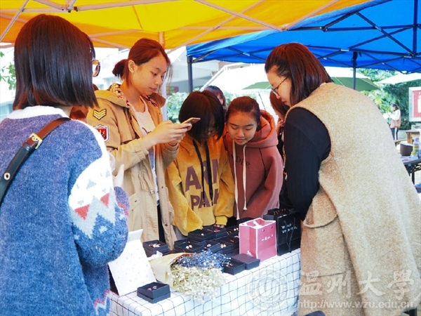 2017年11月11日上午,万象城awc官网登录入口团委学生会在超豪学区露天小广场举办双十一特色活动“跳蚤市场”活动。