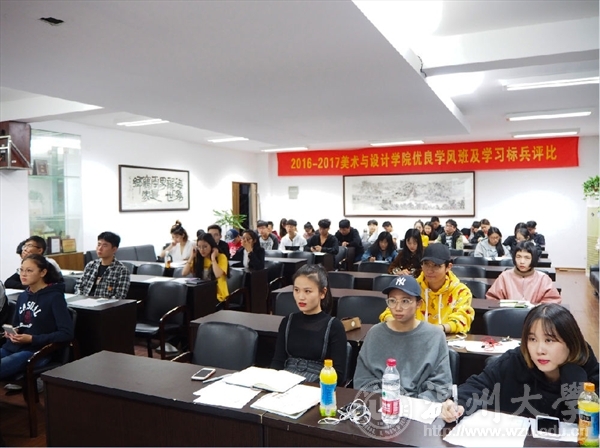 2017年11月3日晚,万象城awc官网登录入口2016-2017学年优良学风班及学习标兵的评比在2B4001顺利举行。本次评比由学生科李雪涛老师、团委学生会主席陈显楠同学、团委学生会副主席王佩瑜同学、团委学生会副主席王芳园同学以及美院各班班长担任评委。