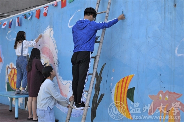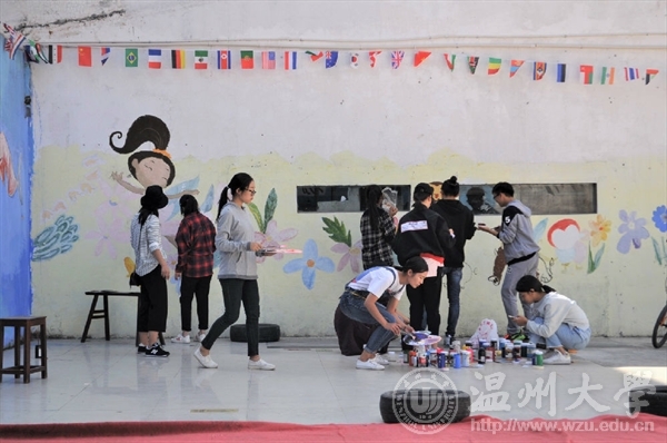 2017年10月29日,万象城awc官网登录入口“艺家人”青年志愿者协会前往白门侨星幼儿园开展了墙绘活动。志愿者们经过大半个小时的车程终于到达终点站,踏入幼儿园发现,它并没有想象中那么现代化,墙上是被太阳曝晒过的稚嫩童画。刚到那里,志愿者们便开始着手准备,将颜料摊在地上,打水,洗笔……,有条不紊地进行着。随后每个人开始选自己要画的卡通人物,由于园长告诉我们,这是孩子们跳舞的场地,所以志愿者们也跟着主题走,上网搜集了许多可爱的卡通舞者,选好之后,二话不说就动起手中的水粉笔开始绘画,志愿者们先用铅笔打稿,用黑色颜料勾线,再上色。不一会儿,肉色的皮肤,粉红的裙子,精美的发饰,优雅的舞姿等便在蓝色的墙面上显现出来了。志愿者们大肆挥舞画笔,用嫩黄和天蓝颜色打底,在太阳底下让人看了温暖极了,太阳也愈演愈烈,志愿者们的头上也开始出现汗珠。上午的时间飞快地流逝,吃过饭后小憩一会,志愿者们便接着干活,同时又把墙面整体地刷了一遍,更突出了人物,再加上一些花花草草的点缀,整个围墙都漂亮醒目了起来。园长十分开心,志愿者们也很欣慰。快结束的时候,还有这边的上级领导来视察,夸奖了我们志愿者的工作成果,也给了一些有用的建议。本次活动开展的目的在于给幼儿园的小朋友们增添不一样的色彩,让他们在一个多彩地小世界里快乐成长、快乐学习,同时也锻炼了志愿者们自身的耐心和技巧,肯定了我们温大人的能力。此次活动让志愿者们收获了很多,早已疲惫的身体里面却是满满的幸福,虽然做的不多,但志愿者们把自己所学到的知识都应用起来了。同时,也希望我们志愿者点点滴滴的行动可以对社会的其他人带来感想,让越来越多的社会人士开始关怀心中的点点滴滴,给予需要帮助的人更多温暖!图/文:金 哲罗会慧董 悦