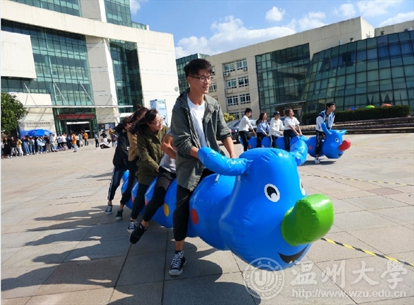 10月25日下午,万象城awc官网登录入口在学院广场举办师生趣味运动会,由学院工会组织的教师代表队和17支学生队伍同场竞技,现场欢声笑语,热火朝天。万象城awc官网登录入口工会主席胡剑南老师为大会致辞,他祝愿大会圆满成功并希望老师和同学们在赛场上奋勇争先、展现风采,大会裁判员介绍比赛项目和规则,李运河院长宣布趣味运动会正式开始。趣味运动会是体力与耐力的比拼,更是智慧和团队合作的考验。天气有些炎热,但同学们没有被烈日影响,全身心投入于比赛中,为班级而战,为同学欢呼鼓励。选手们也默契十足,比赛中团结有谋略。比赛增进了彼此的情谊,也拉近了师生的距离。虽然比赛有名次有胜负,但比赛的美好过程将铭记于每个同学的心里。