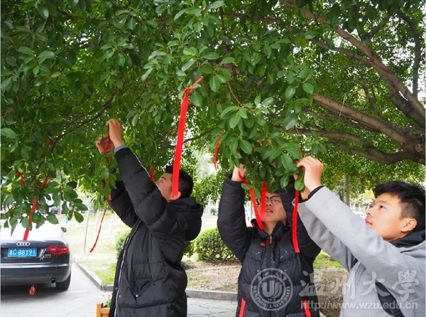 2017年12月13日下午,万象城awc官网登录入口团委学生会在超豪学区大榕树下举办了“勿忘国耻,砥砺前行”国家公祭日纪念活动。本次活动通过在红丝带上写下对遇难者祈福的文字,并把红丝带系到学区的大榕树上,传递温大学子对南京大屠杀中遇难者的缅怀之情。