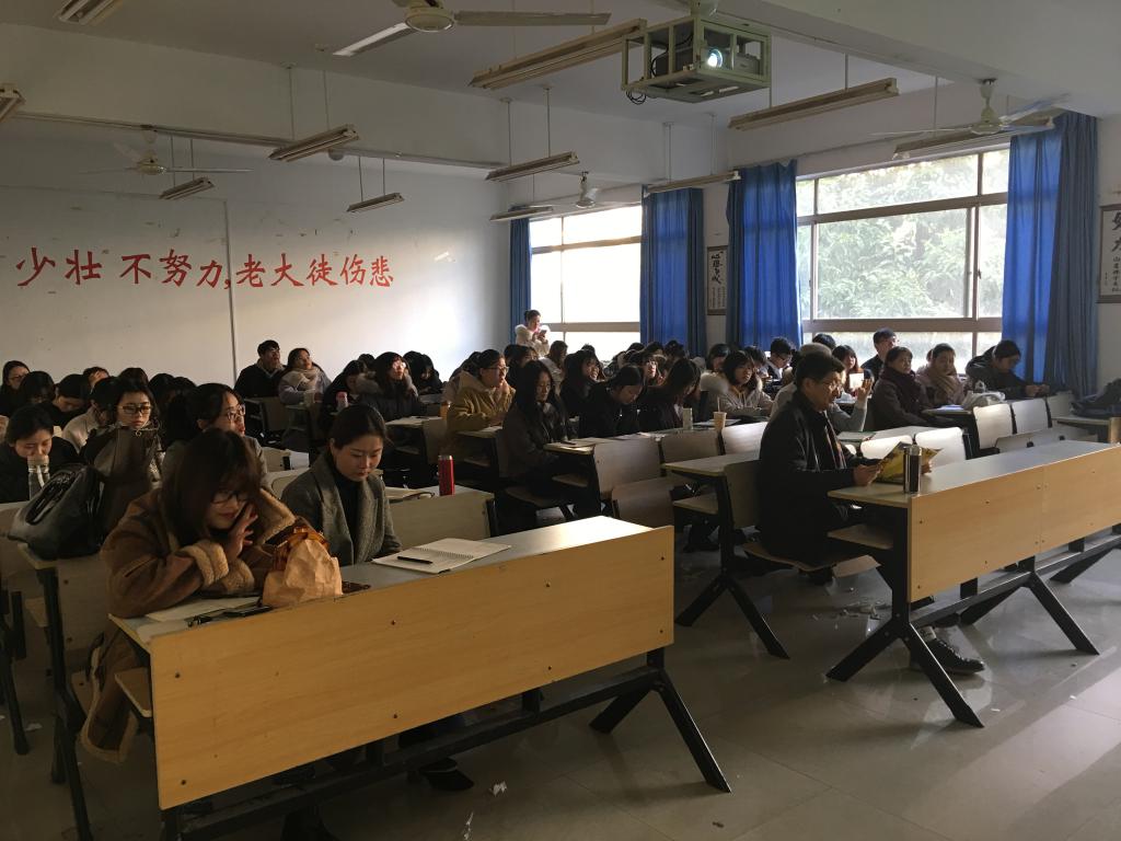 2018 年1 月11 日上午8:30在万象城awc官网登录入口3B204教室,温州市鹿城区名师金鸥老师为万象城awc官网登录入口的师范生和研究生作了以“如何深入的钻研教材”为主题的课堂研讨。万象城awc官网登录入口胡建南老师主持了活动。