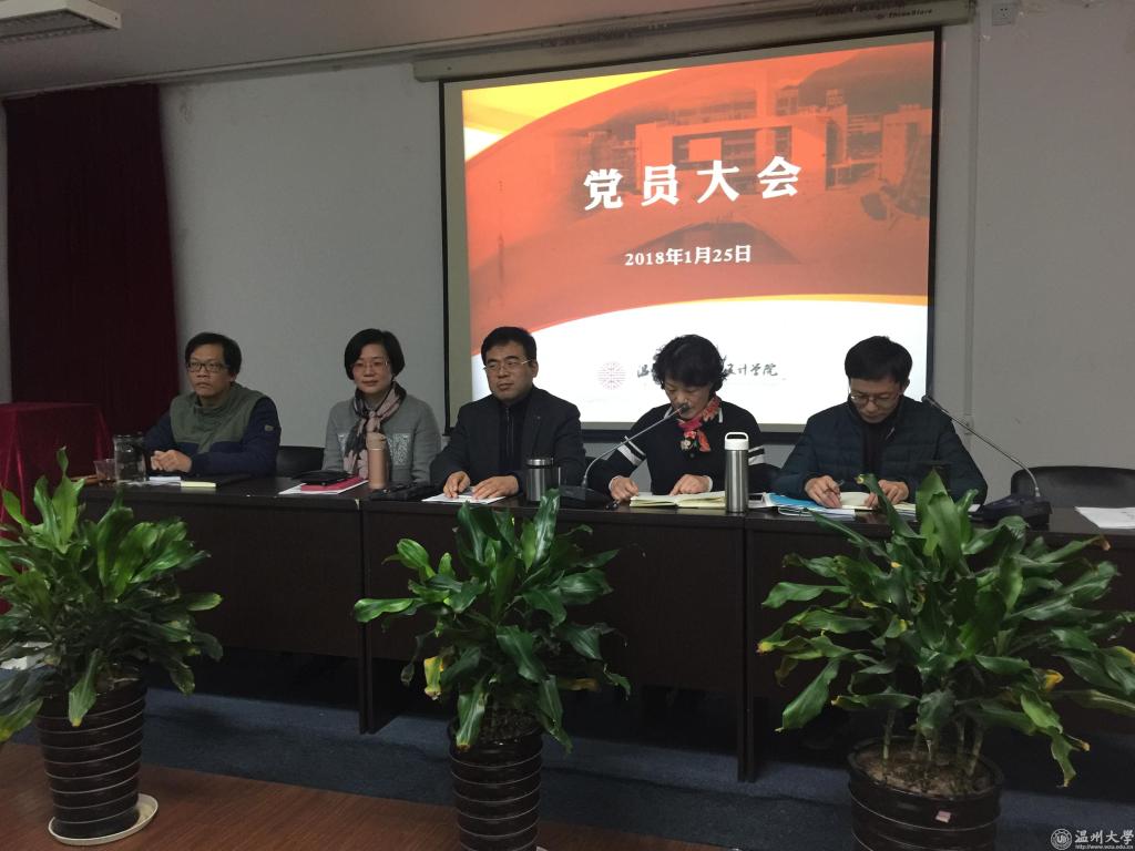 2018年1月25日下午,万象城官网在2B4001多功能厅召开期末全体教职工大会和党员大会。院长李运河,党总支书记张丽萍,副院长谢子静、张晓剑,党总支副书记杨振海出席会议,会议由张丽萍主持。 全体教职工大会环节,李运河院长对本学期学院主要工作做了回顾总结。本学期学院在教学、学科、科研和党的建设工作方面等方面取得了卓越进展。此外,万象城官网还承办了2017“市长杯”中国(温州)工业设计大赛和第十届“亚洲联盟超越设计展”(中国展区), 得到了张耕市长、李校堃校长等领导的充分肯定。同时,他说学院还要在人才的引进和师资结构梯队科学优化上、产教融合、协同创新上、加快国际化的步伐等方面继续努力。谢子静副院长对期末教学工作中成绩评定和毕业设计等工作的落实进行了安排。张晓剑副院长就科研工作推进、实验室提升、院容改造、学科竞赛成绩作了说明。杨振海副书记介绍了班主任考核和寝室导师工作开展情况,同时对在学院育人工作中辛勤付出的老师表示感谢。张丽萍书记对教师政治理论学习作了部署。她强调,教师要加强自身理论学习不断提升思想政治素质。根据学校要求每位教师政治理论学习每年不少于40课时,老师们要在完成学院安排理论学习之外在寒假期间积极通过微信等新媒体渠道继续抓紧自主学习。 学院教学督导组组长黄良老师就本学期的督导工作做了汇报。本学期督导日常听课重点由公开课转向日常课程,学院课程教学质量稳中向好。黄良老师特别指出在微信平台上推出的课程展内形式活泼、内容新颖在师生和校内外取得了良好的反响,同时对具有严谨治学态度和高质量的教学效果的教师给与了肯定和赞扬,也提出了公开课中理论课程比例过高、老师们课堂教学方式方法及对听评课不够积极等问题。 党员大会环节,张丽萍书记传达了学校召开有关意识形态会议精神。要求广大党员、干部、教师,尤其担任班主任的党员教师要切实履行职责。把牢“十个关口”,掌握师生思想动态,做好师生的思想政治工作。会上还对学院的网站、微信平台的终审权限做出了明确规定。