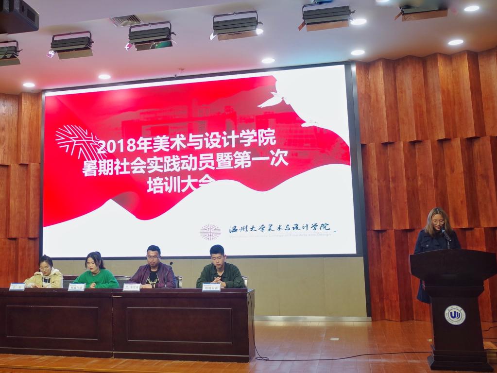 3月25日晚,万象城awc官网登录入口暑期社会实践动员暨第一次培训大会于雁山厅举行,本次大会由美院团委学生会学术实践部主办,美院2017年优秀实践队长以及团学指导老师李雪涛出席了此次大会,参与本次动员会的成员还有大一全体同学。